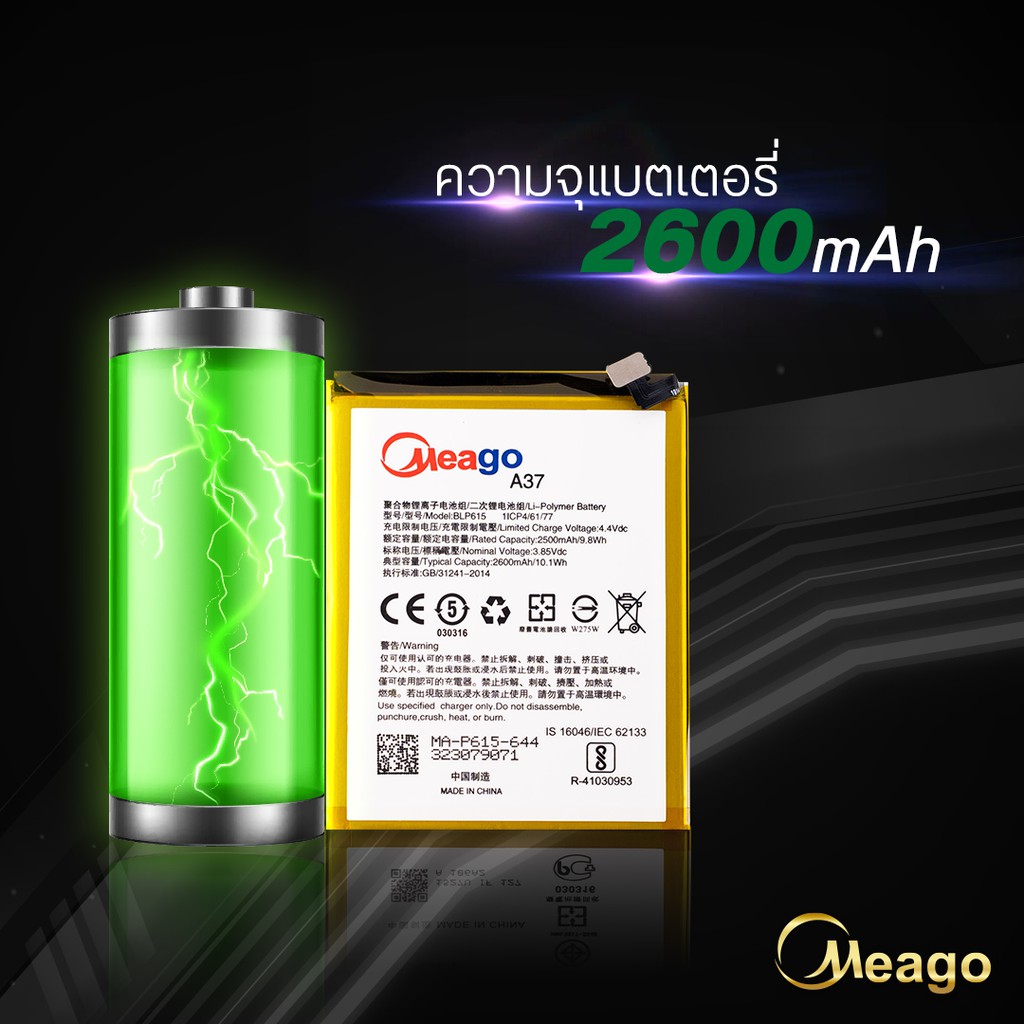 Meago แบตเตอรี่สำหรับ Oppo A37 / A37F / A37FW / A37M / BLP615 แบตออปโป้ สินค้ามีการรับประกัน