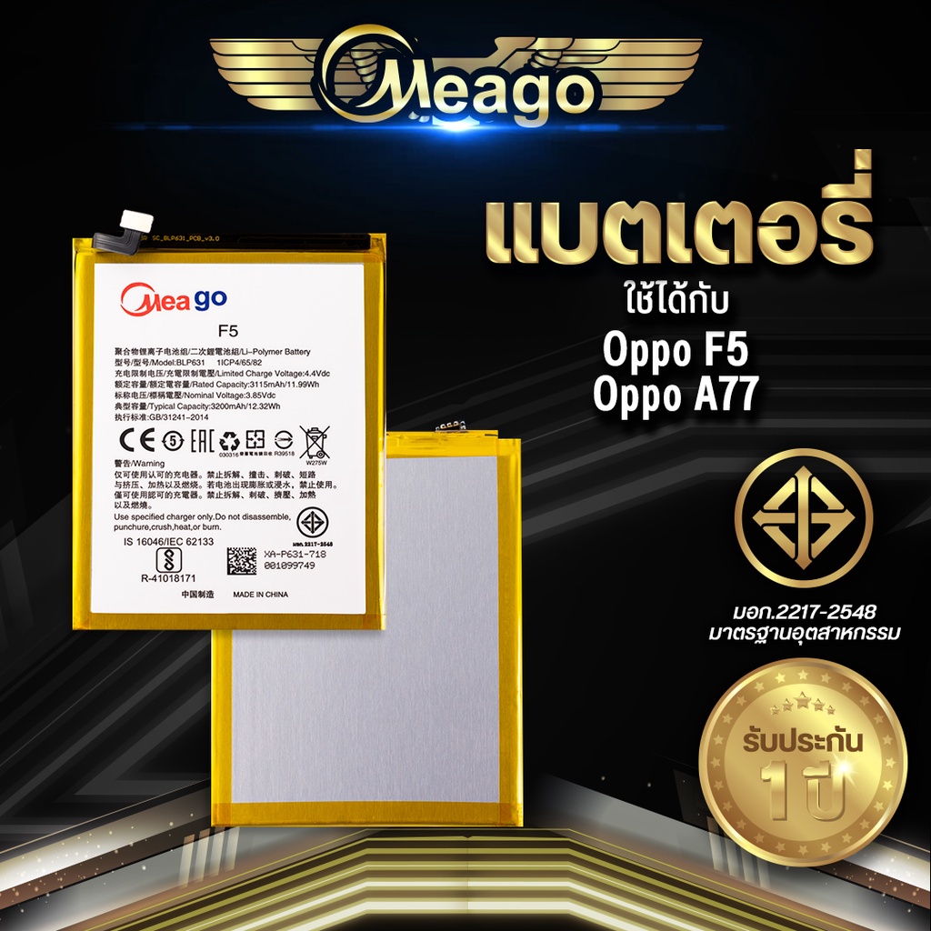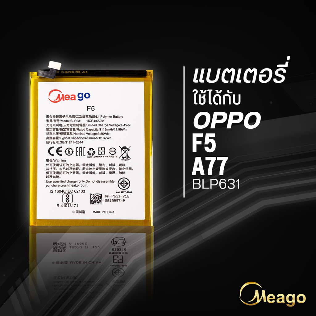 Meago แบตเตอรี่สำหรับ Oppo F5 / A77 / F5 Youth / F5 Pro / BLP631 แบตออปโป้ สินค้ามีการรับประกัน