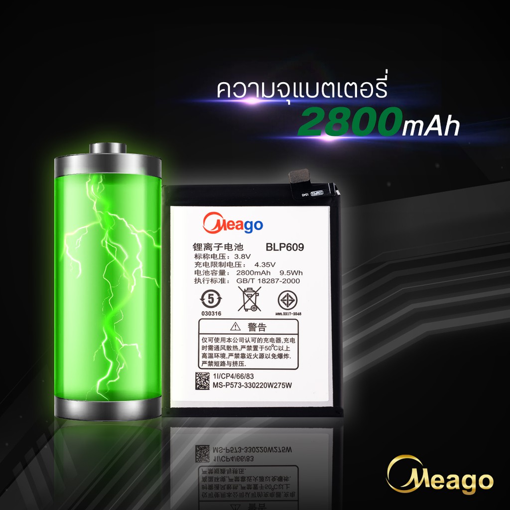 Meago แบตเตอรี่สำหรับ Oppo R9 / R9M / R9MT / F1 plus / BLP609 แบตออปโป้ สินค้ามีการรับประกัน