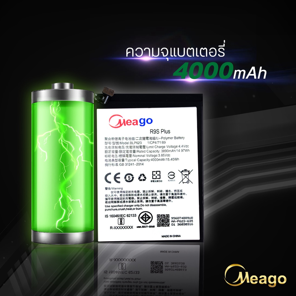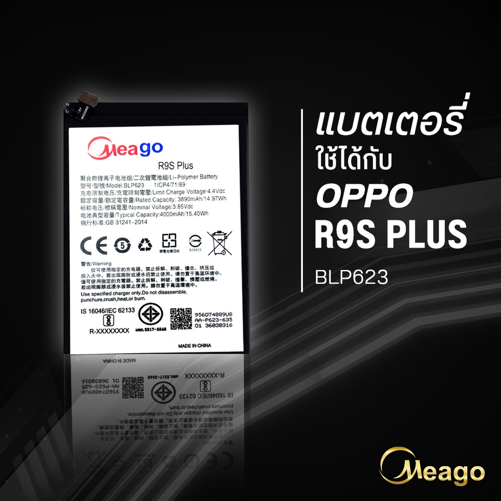 Meago แบตเตอรี่สำหรับ Oppo R9s plus / R9s pro / BLP623 แบต แบตออปโป้ สินค้ามีการรับประกัน