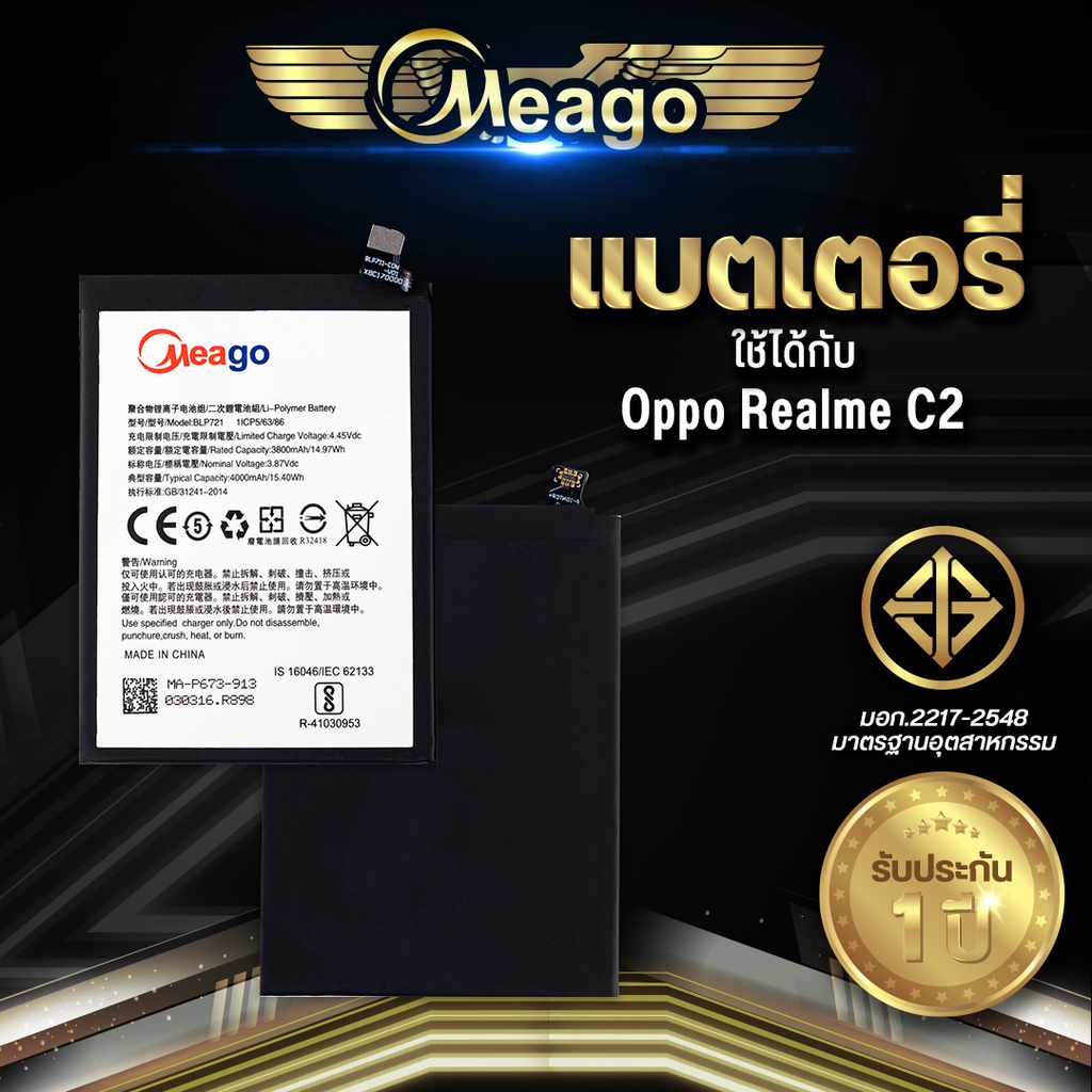 Meago แบตเตอรี่สำหรับ Realme C2 / BLP721 แบตเรียลมี สินค้ามีการรับประกัน