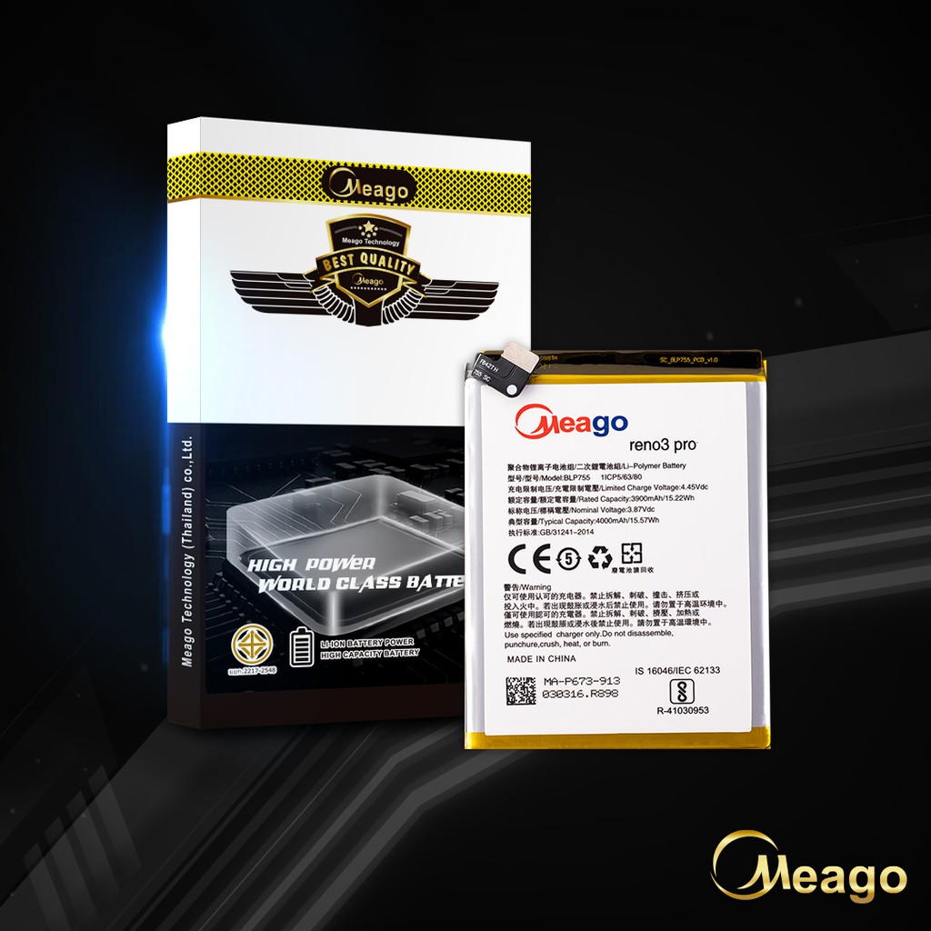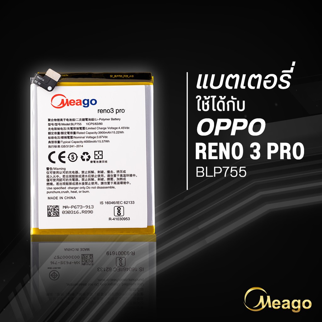 Meago แบตเตอรี่สำหรับ Oppo Reno 3pro / Reno3 / BLP755 แบต แบตออปโป้ สินค้ามีการรับประกัน