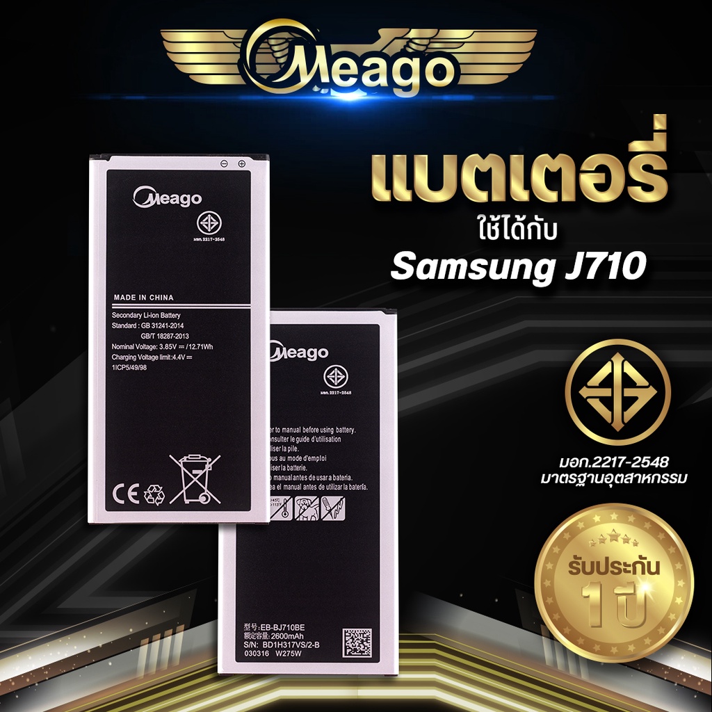 Meago แบตเตอรี่สำหรับ Samsung J7 2016 / Galaxy J7 2016 / J710 / EB-BJ710BE แบตซัมซุง สินค้ามีรับประกัน