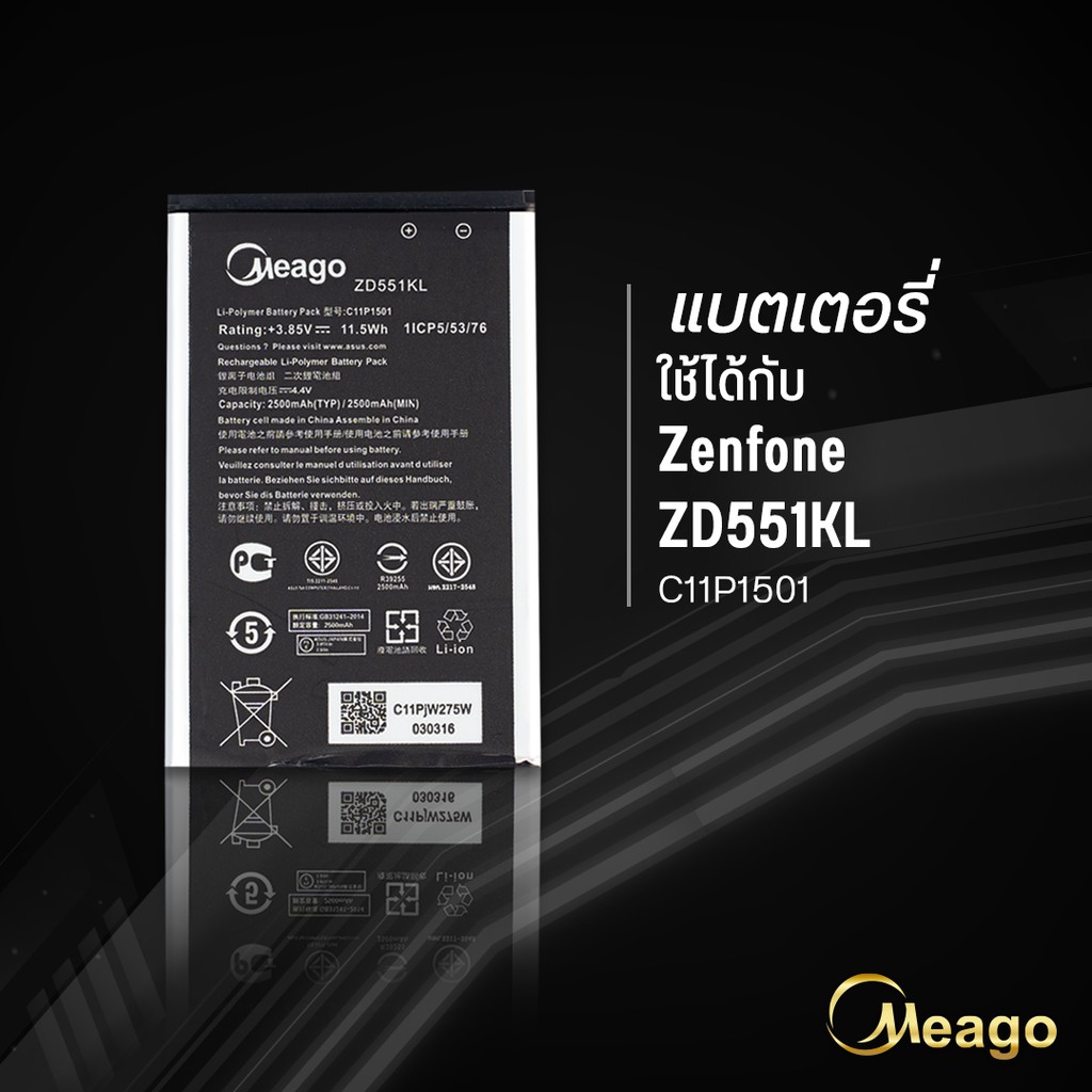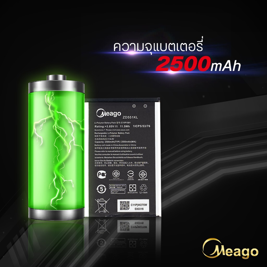 Meago แบตเตอรี่สำหรับ Zenfone ZD551KL / C11P1501 แบตเซนโฟน สินค้ามีรับประกัน