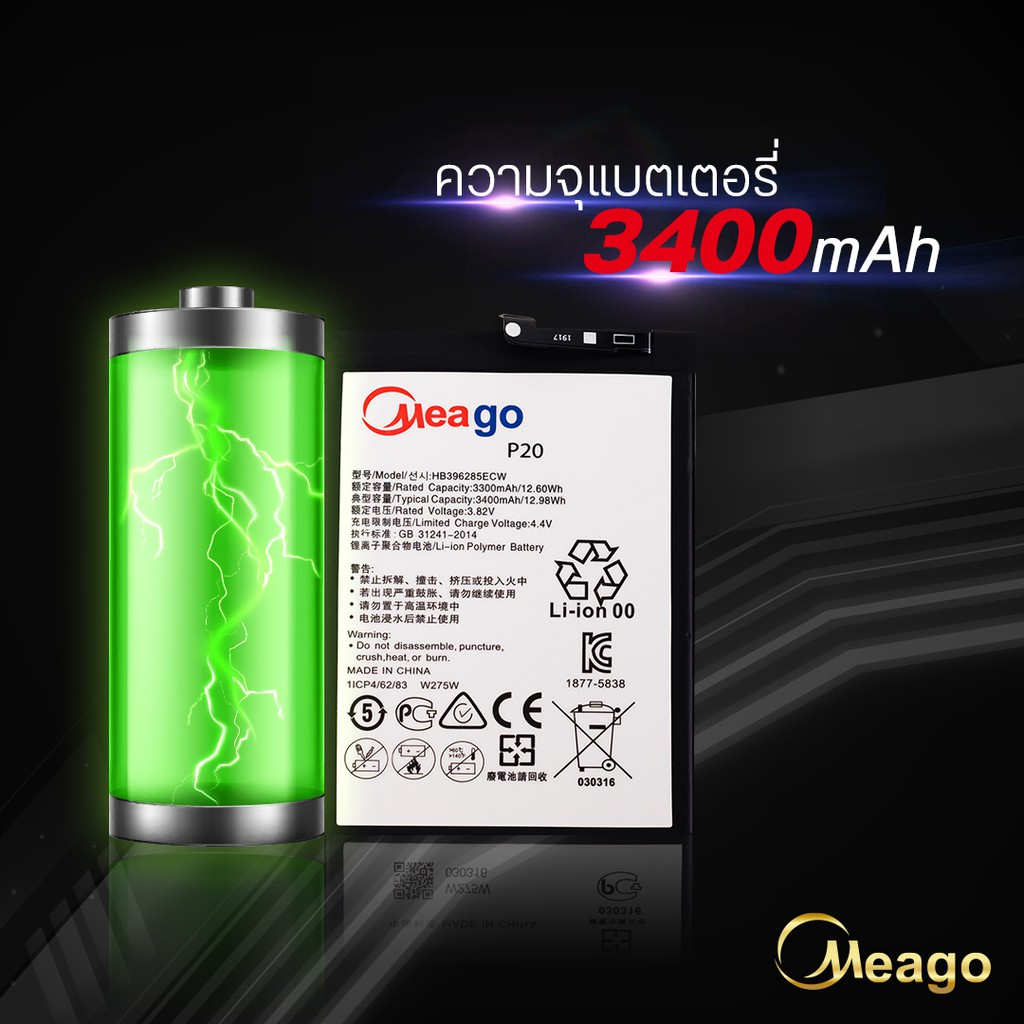 Meago แบตเตอรี่สำหรับ Huawei P20 / HB396285ECW / Honor10 / Honor10 Lite แบตหัวเว่ย สินค้ามีรับประกัน