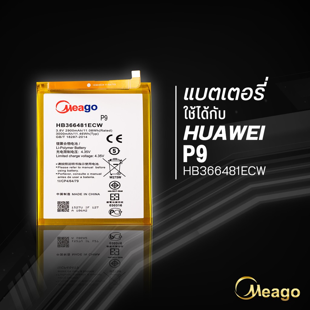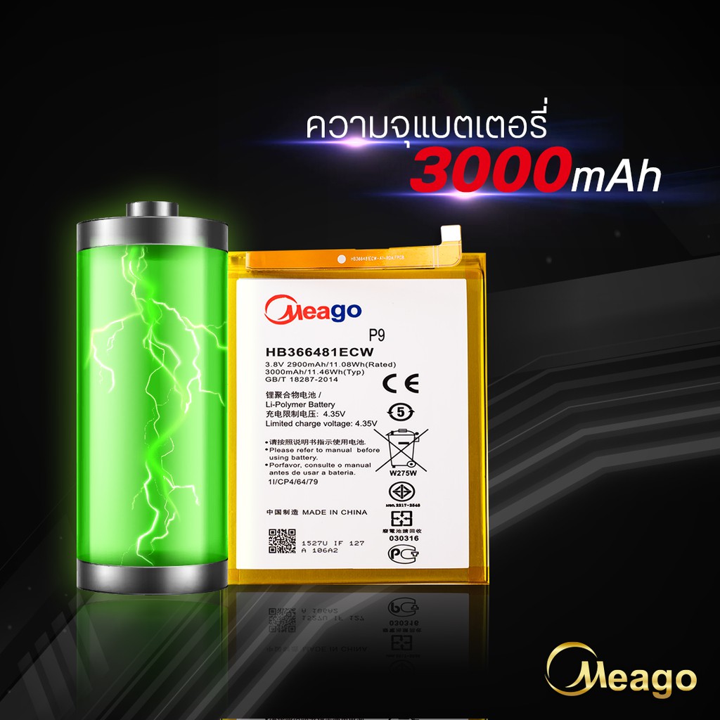 Meago แบตเตอรี่สำหรับ Huawei P9 / P9 Lite / P10 Lite / Y7 Pro / Y7 2018 / HB366481ECW แบตหัวเว่ย สินค้ามีรับประกัน