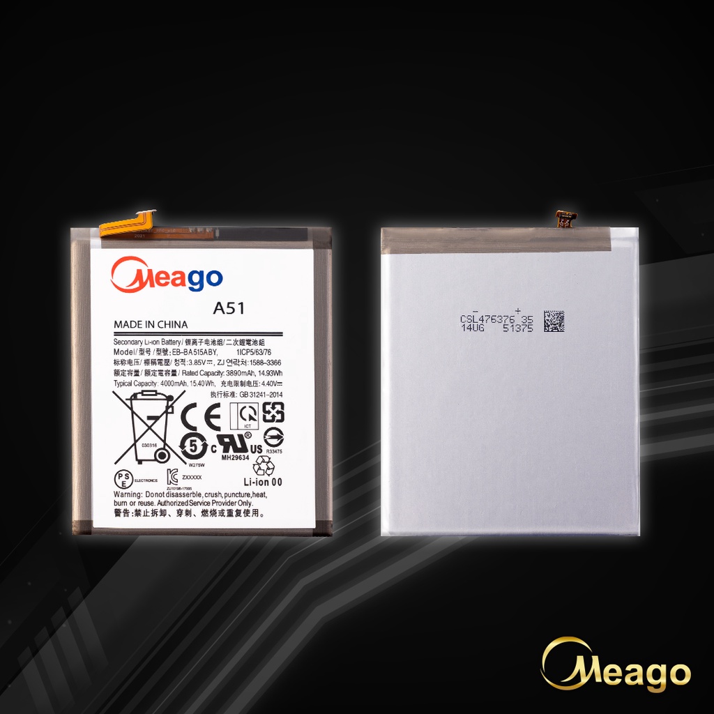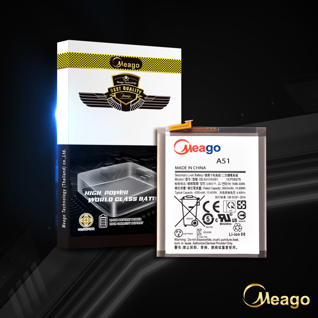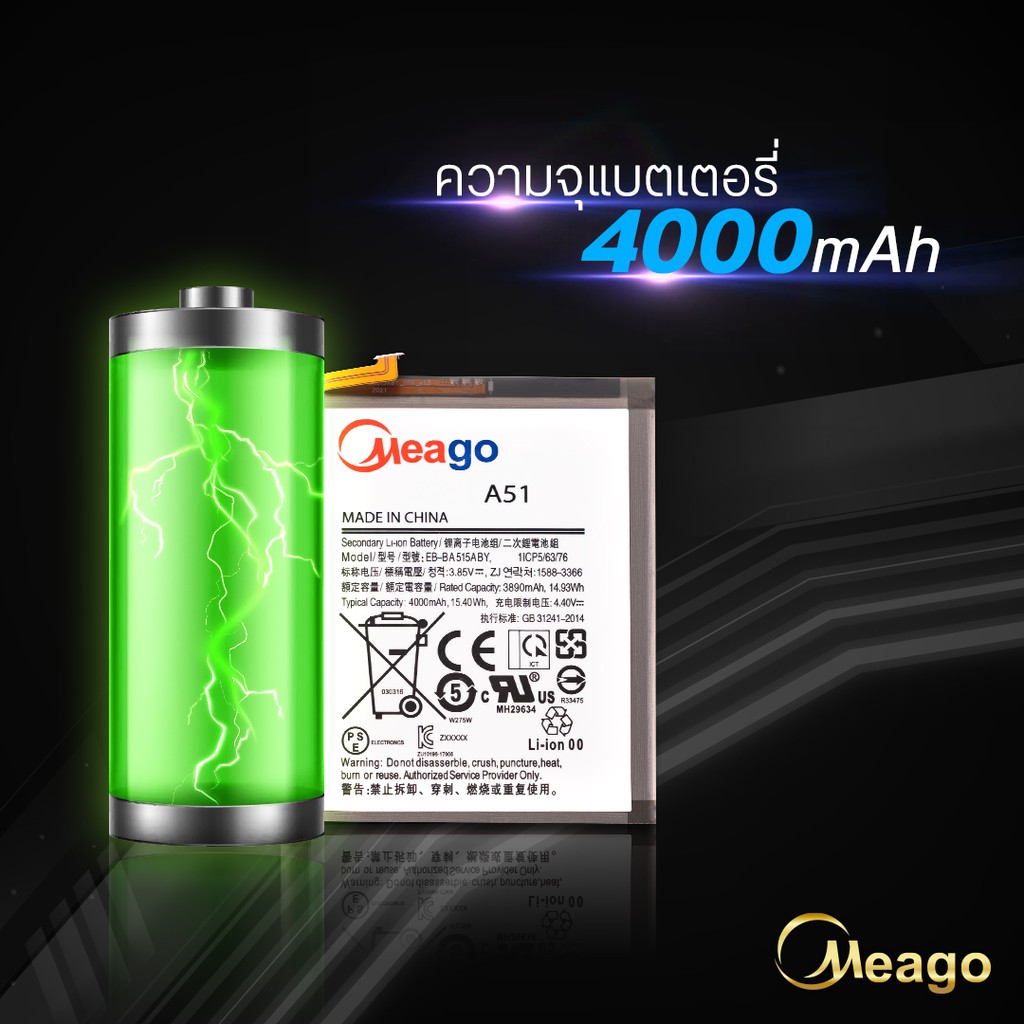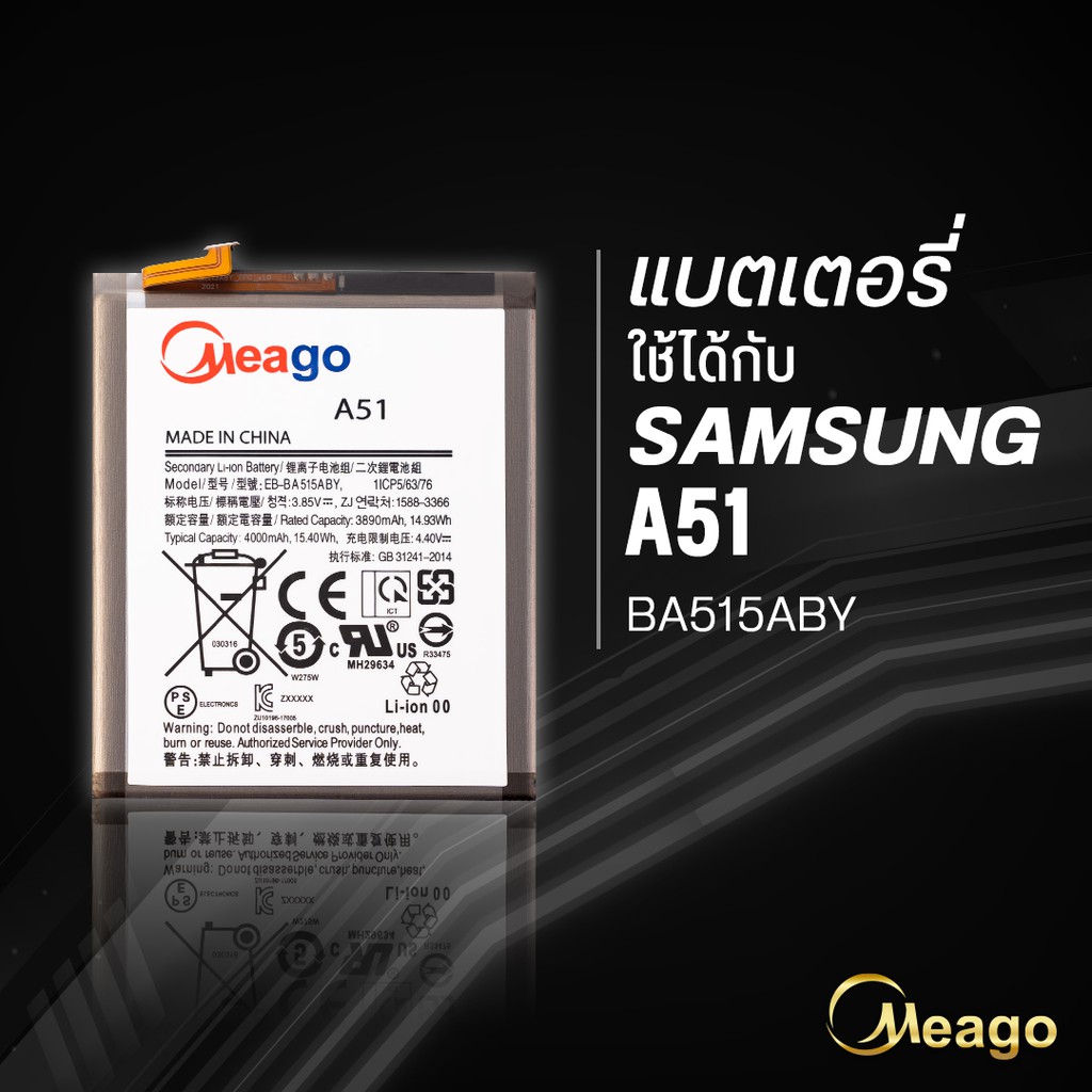 Meago แบตเตอรี่สำหรับ Samsung A51 / Galaxy A51 / EB-BA515ABY / A515 / A515F แบตซัมซุง สินค้ามีรับประกัน
