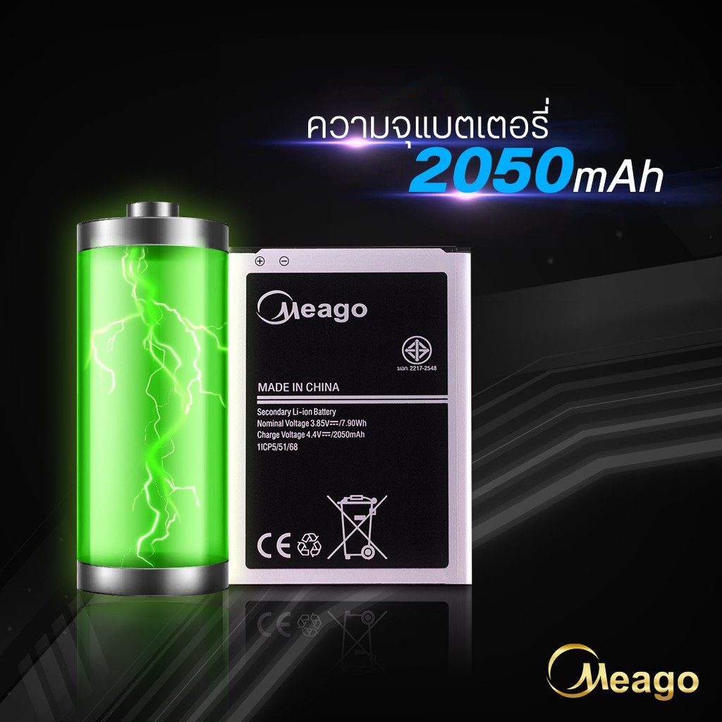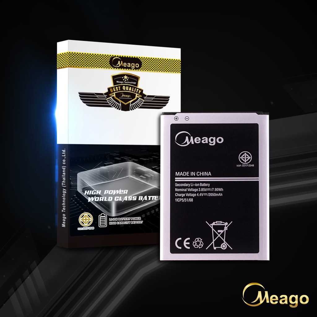 Meago แบตเตอรี่สำหรับ Samsung J1 2016 / Galaxy J1 2016 / J120 / EB-BJ120CBE / J120A แบตซัมซุง สินค้ามีรับประกัน