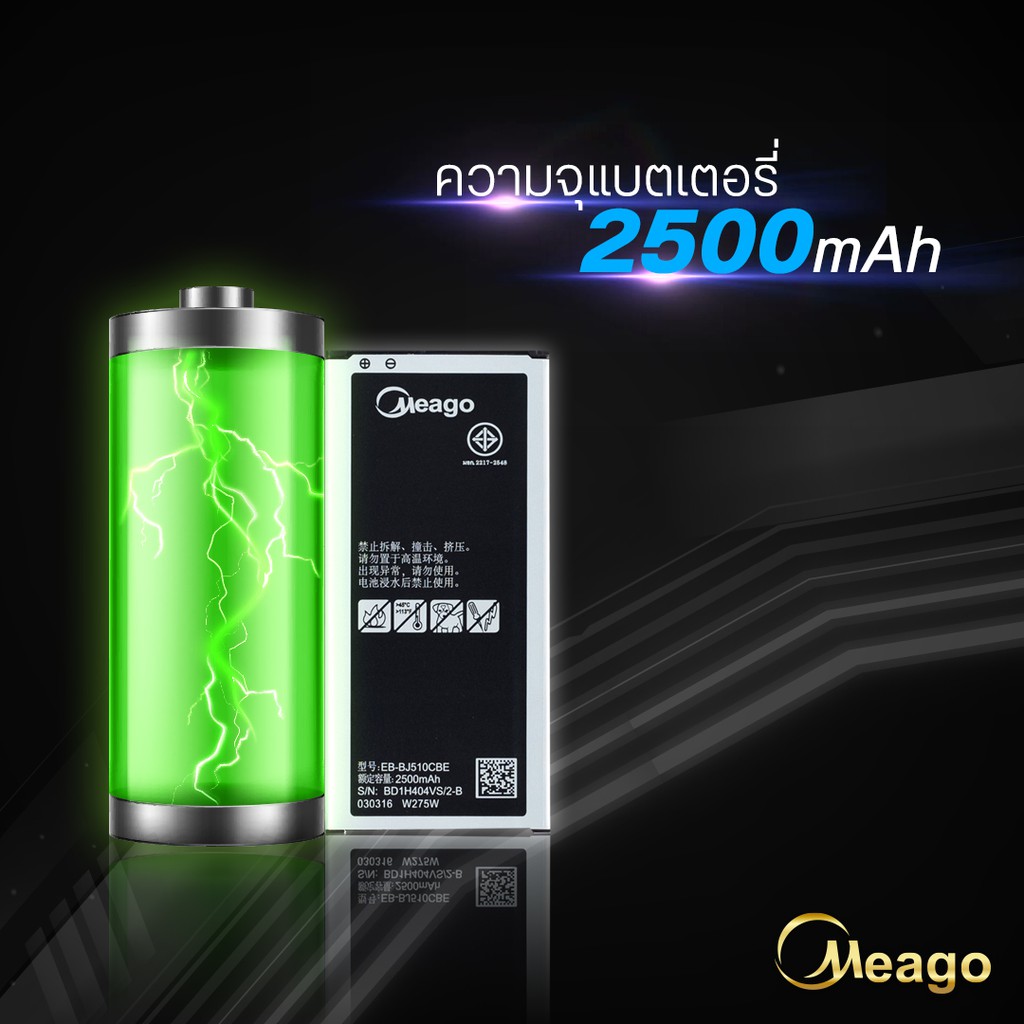 Meago แบตเตอรี่สำหรับ Samsung J5 2016 / Galaxy J5 2016 / J510 / EB-BJ510CBE แบตซัมซุง สินค้ามีรับประกัน