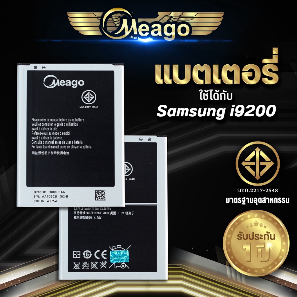 Meago แบตเตอรี่สำหรับ Samsung Mega 6.3 / Galaxy Mega 6.3 / I9200 / I9205 / B700BC แบตซัมซุง สินค้ามีรับประกัน