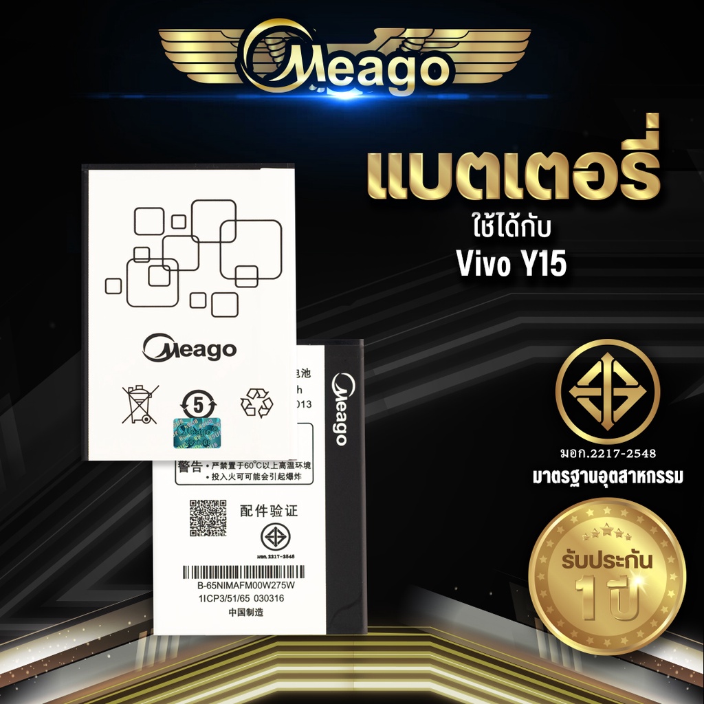 Meago แบตเตอรี่สำหรับ Vivo Y15 / Y13 / Y21 / Y22 / Y613 / Y622 / Y13T / Y15W / B-75A / BK-B-65 แบตวีโว่ มีรับประกัน