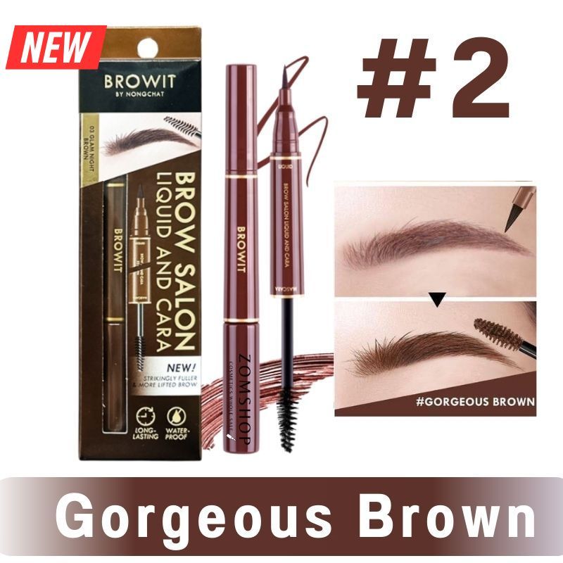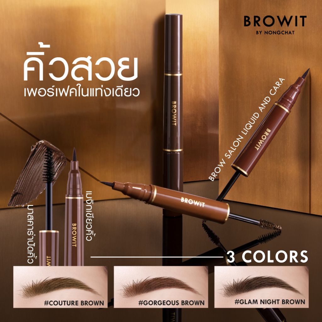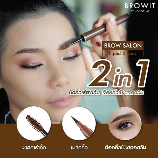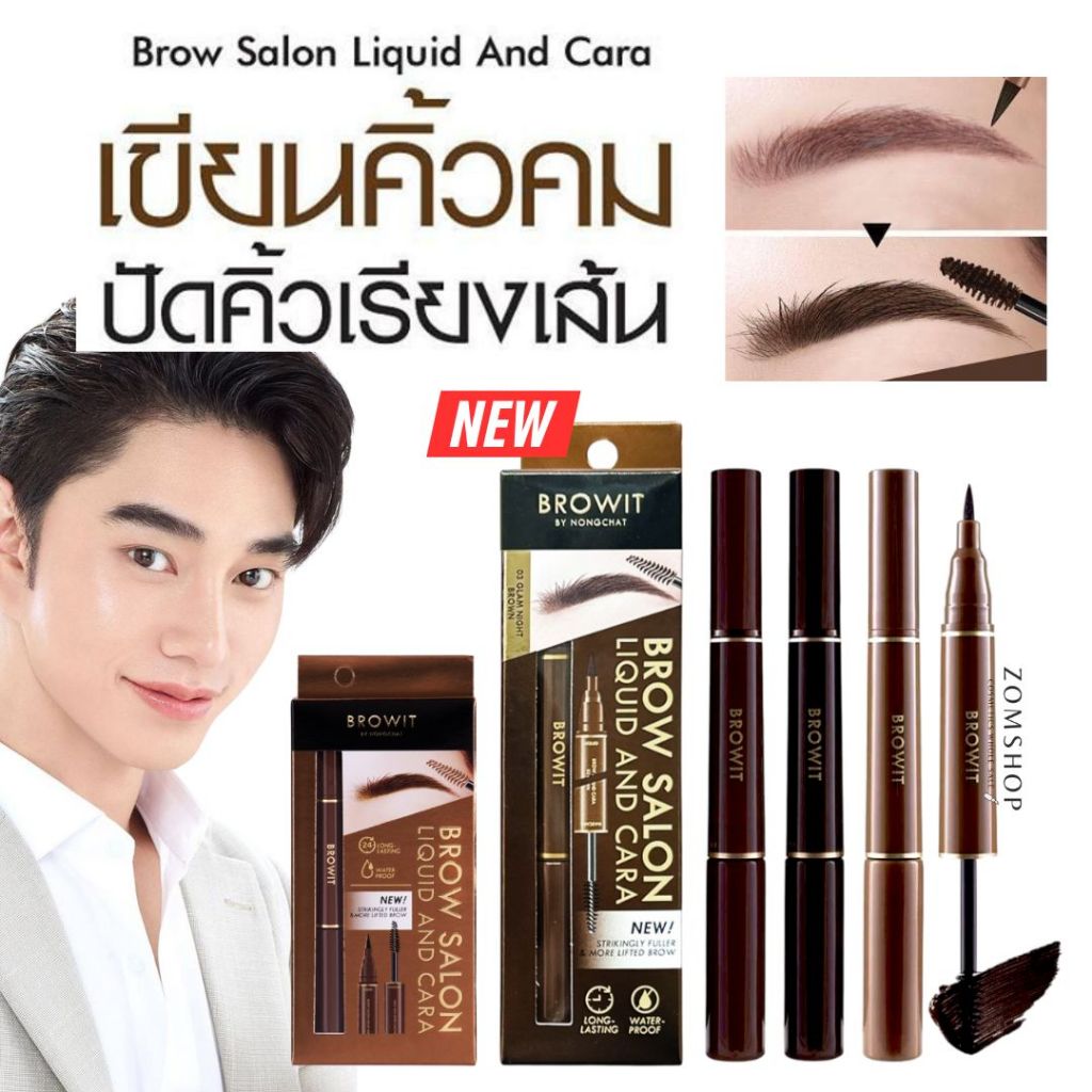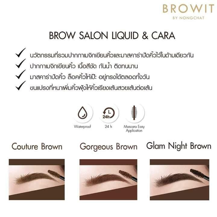【น้องฉัตร】ปากกาเขียนคิ้ว+มาสคาร่าคิ้ว【คิ้วเรียงเส้น คมสวย】BROW SALON LIQUID & CARA 1ml.+3.5g.