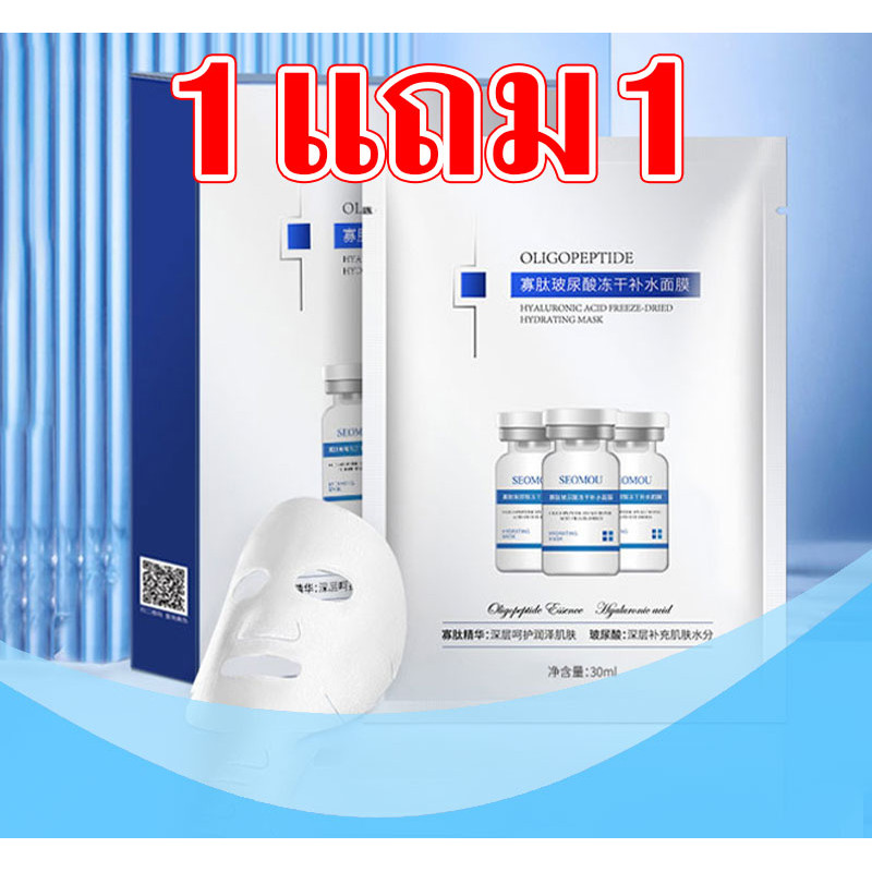 [ซื้อ 1 แถม 1]โอลิโกเปปไทด์ ไฮยาลูโรนิก แอซิด ฟรีซดราย มาส์ก [5 ชิ้น/กล่อง] ให้ความชุ่มชื้น อ่อนโยน ไม่ระคายเคือง