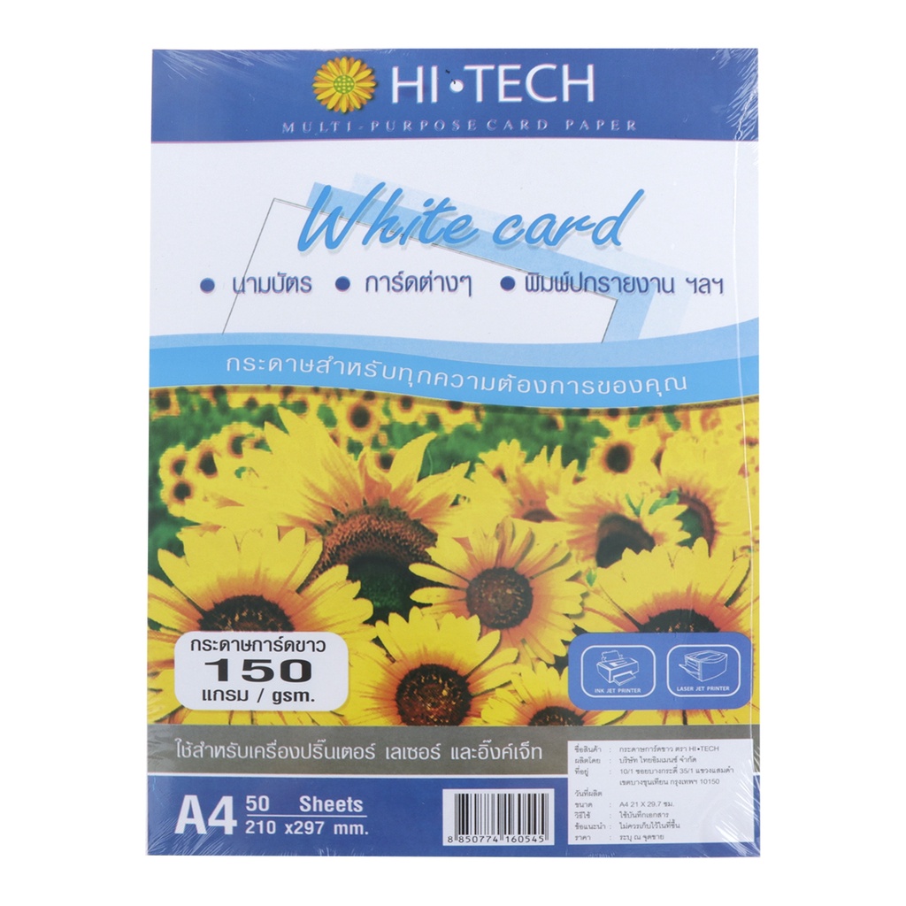 HI-TECH กระดาษการ์ดขาว A4 150 แกรม 50 แผ่น |ZWG|