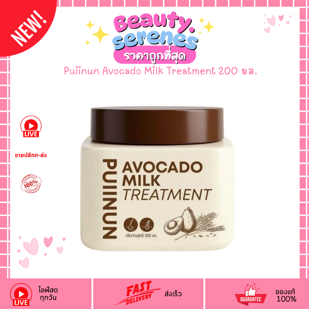 ทรีทเม้นท์อโวคาโดมิลค์ ปุยนุ่ Puiinun Avocado Milk Treatment สูตรอโวคาโดมิลค์ 200ml