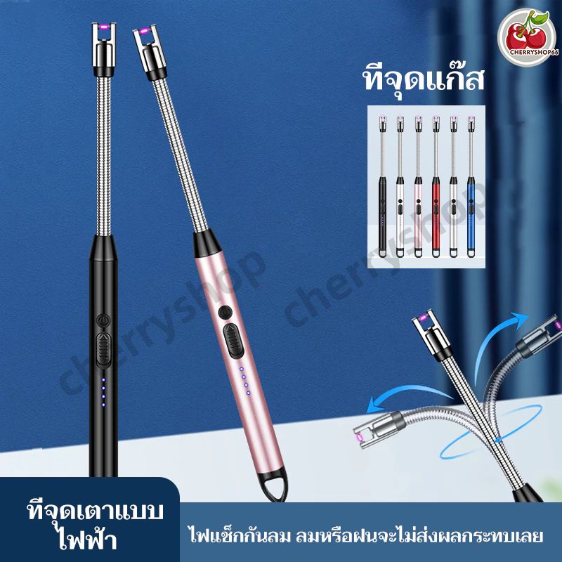 ที่จุดไฟฟ้า ชาร์จ USB ที่จุดเทียนไฟฟ้า คอปรับงอ 360° ไฟแช็กไฟฟ้า จุดไฟไร้เปลว สำหรับเตาแก๊ส [สีชมพู]