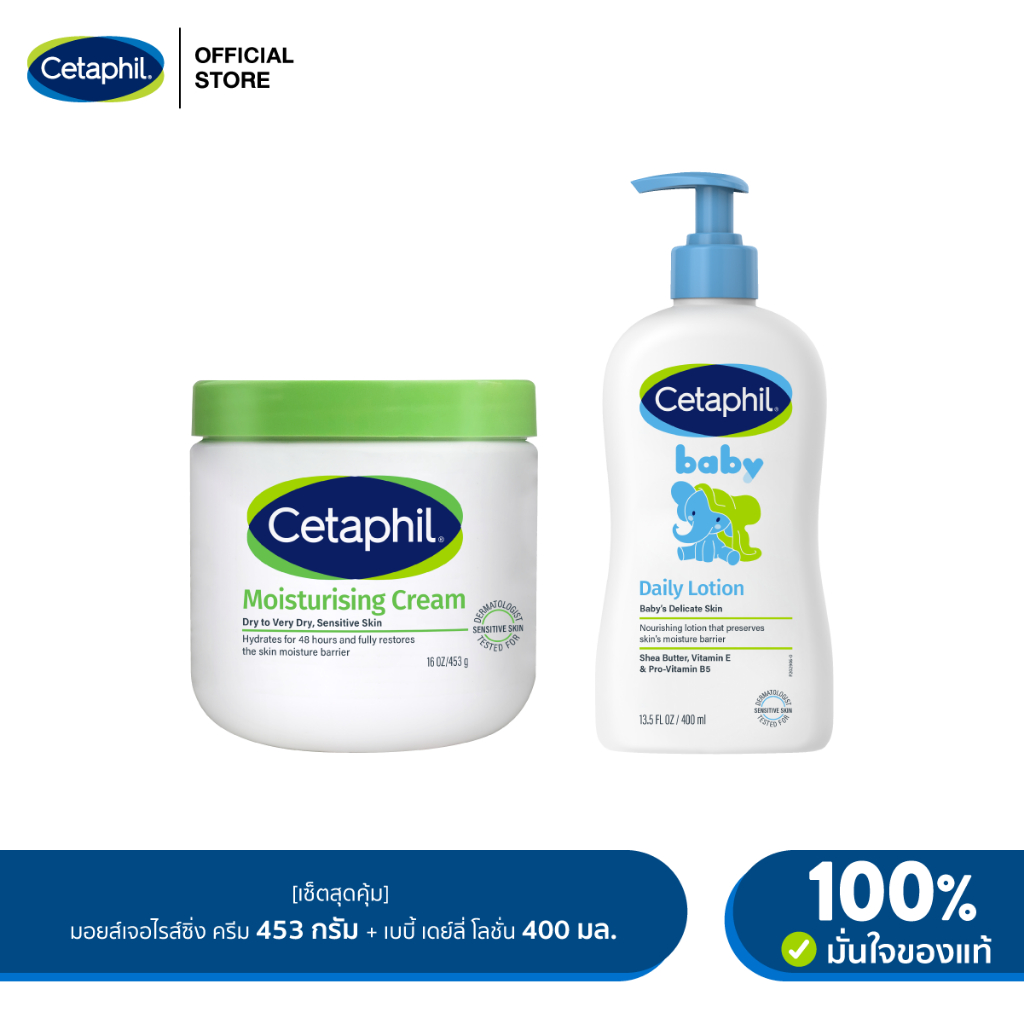 [เซตสุดคุ้ม] Cetaphil Baby Daily Lotion 400 ml. + เซตาฟิล มอยส์เจอไรส์ซิ่ง ครีม 453 กรัม (แพ็คเกจใหม่)