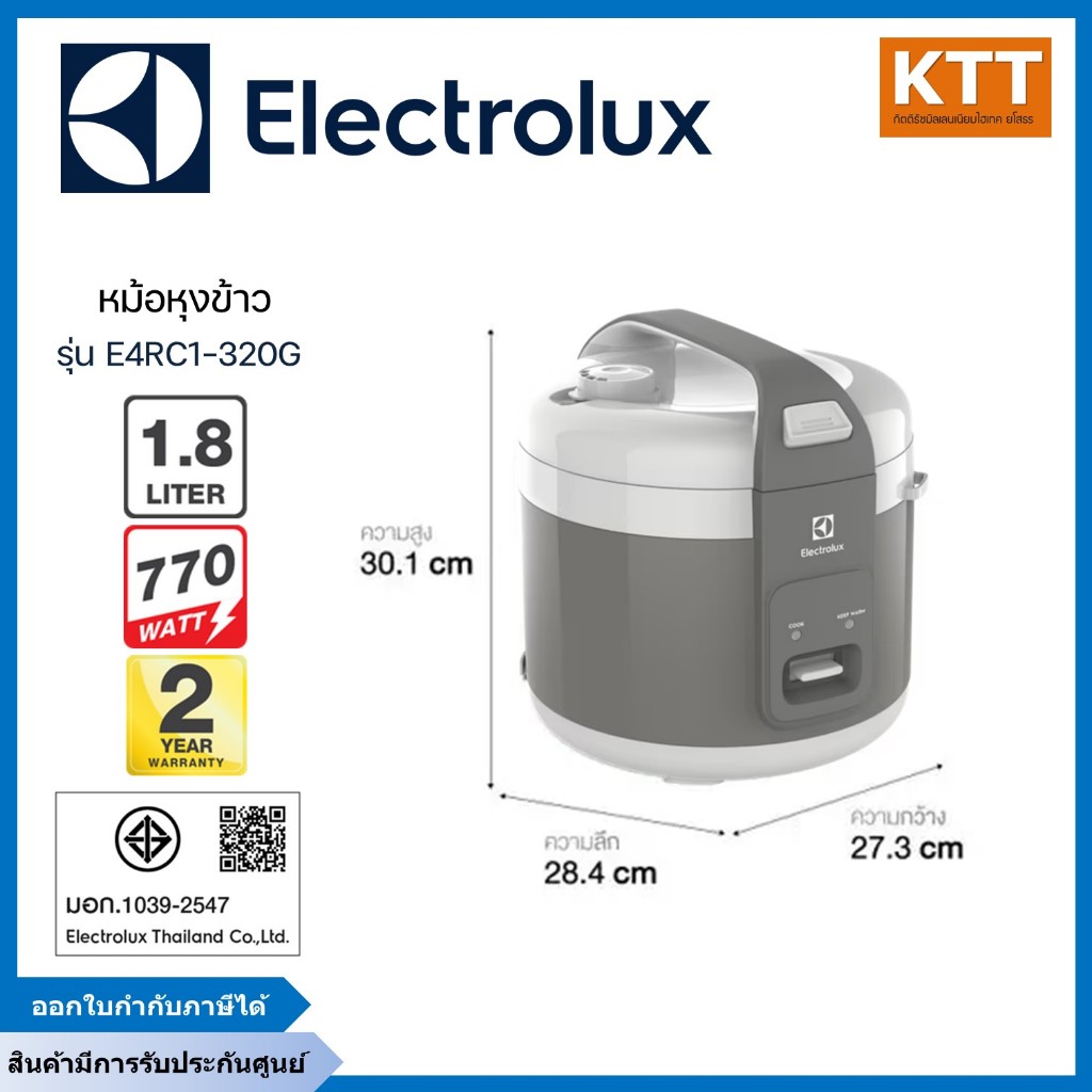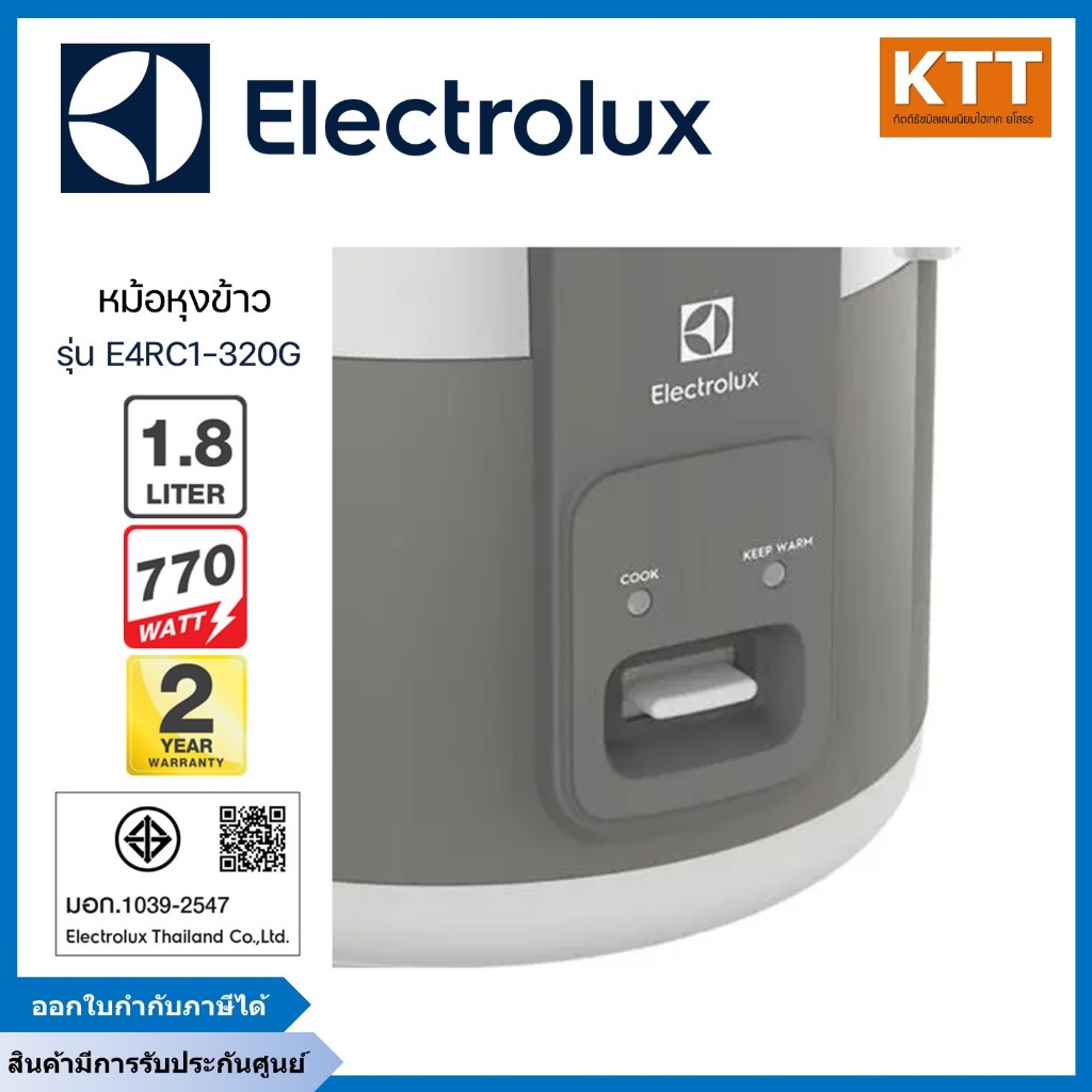 หม้อหุงข้าว ELECTROLUX รุ่น E4RC1-320G ขนาด 1.8 ลิตร สีเทา
