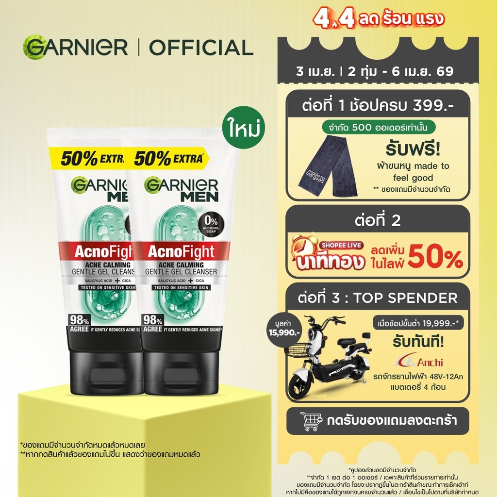 การ์นิเย่ เมน แอคโน ไฟท์ โฟม ทำความสะอาดผิวสูตรอ่อนโยน 150มล. X2 (โฟมผู้ชาย, โฟมล้างหน้า)