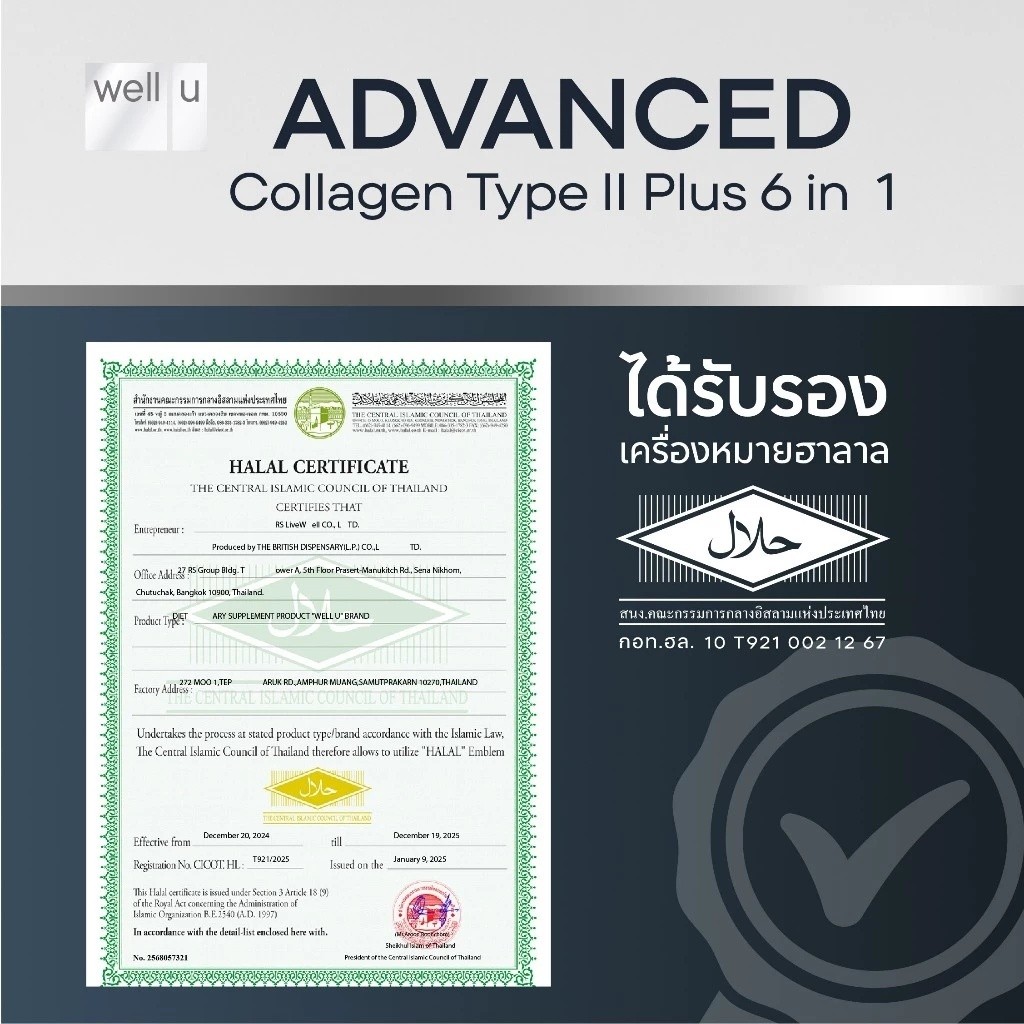 WELL-U Advanced Collagen Type 2 Plus 6 In 1 เวล ยู แอดวานซ์ คอลลาเจน ไทป์ทู พลัส 6 in1 [110 กรัม] [3 กระปุก]