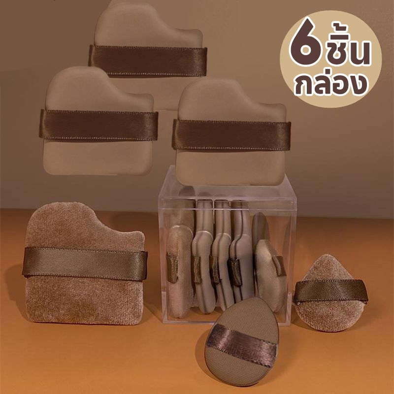 ชุดพัฟคุกกี้ช็อกโกแลต 6 ชิ้น พัฟกำมะหยี่ พัฟขนาดมินิ ไม่กินแป้ง นุ่มพิเศษ ใช้ได้ทั้งแห้งและเปียก สำหรับลงรองพื้น