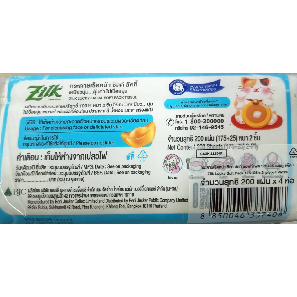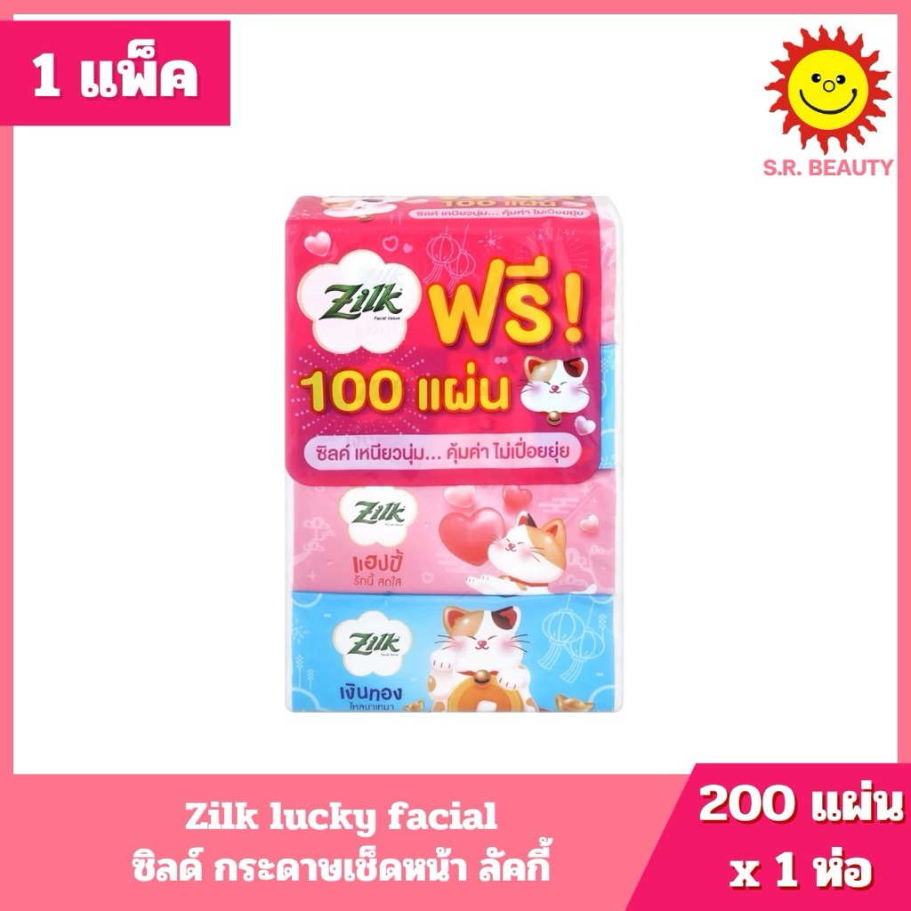 [ 1 แพ็ค ] Zilk Lucky ซิลด์ กระดาษเช็ดหน้า ลัคกี้ ซอฟท์แพค ปริมาณ 200 แผ่น x 1 ห่อ (4ห่อ)