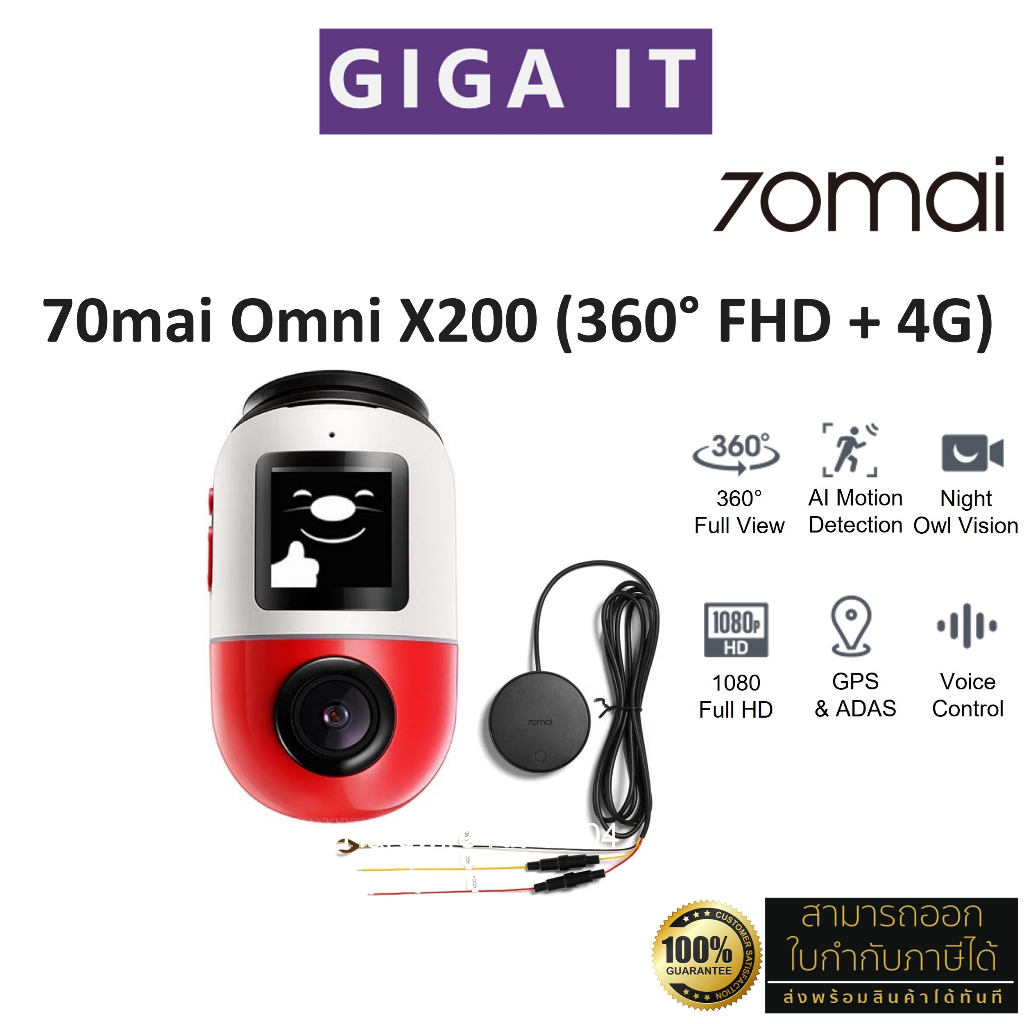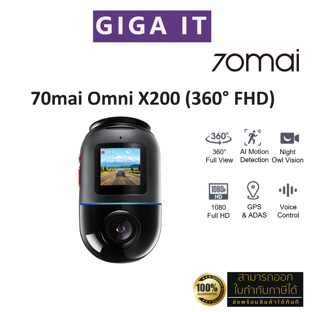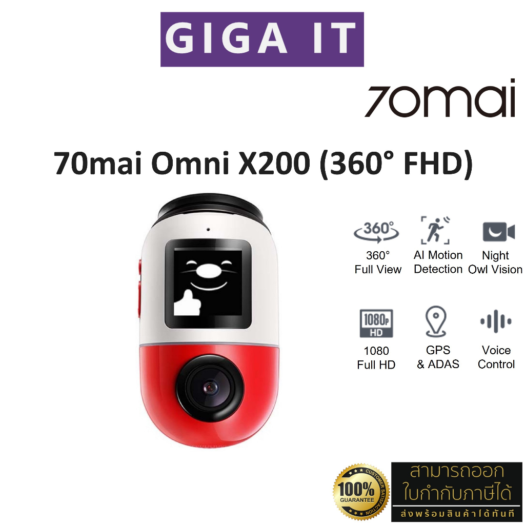 70mai X200 Omni Dash Cam กล้องติดรถยนต์ (FHD, 4G, ภาพพาโนรามา 360, ตรวจจับการเคลื่อนไหว, GPS, 60FPS ประกันสินค้า 1 ปี