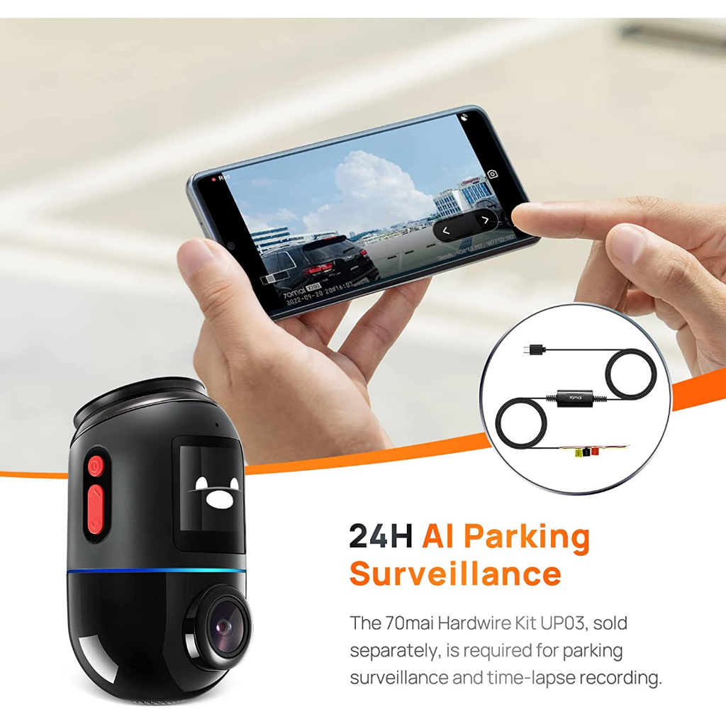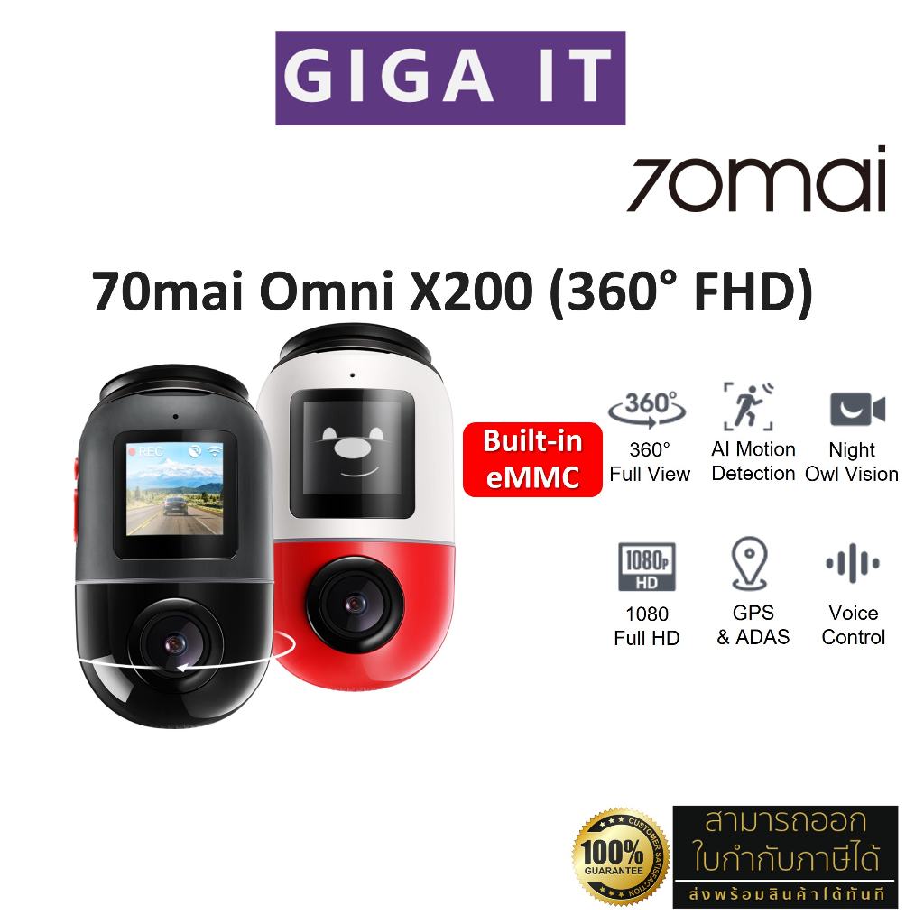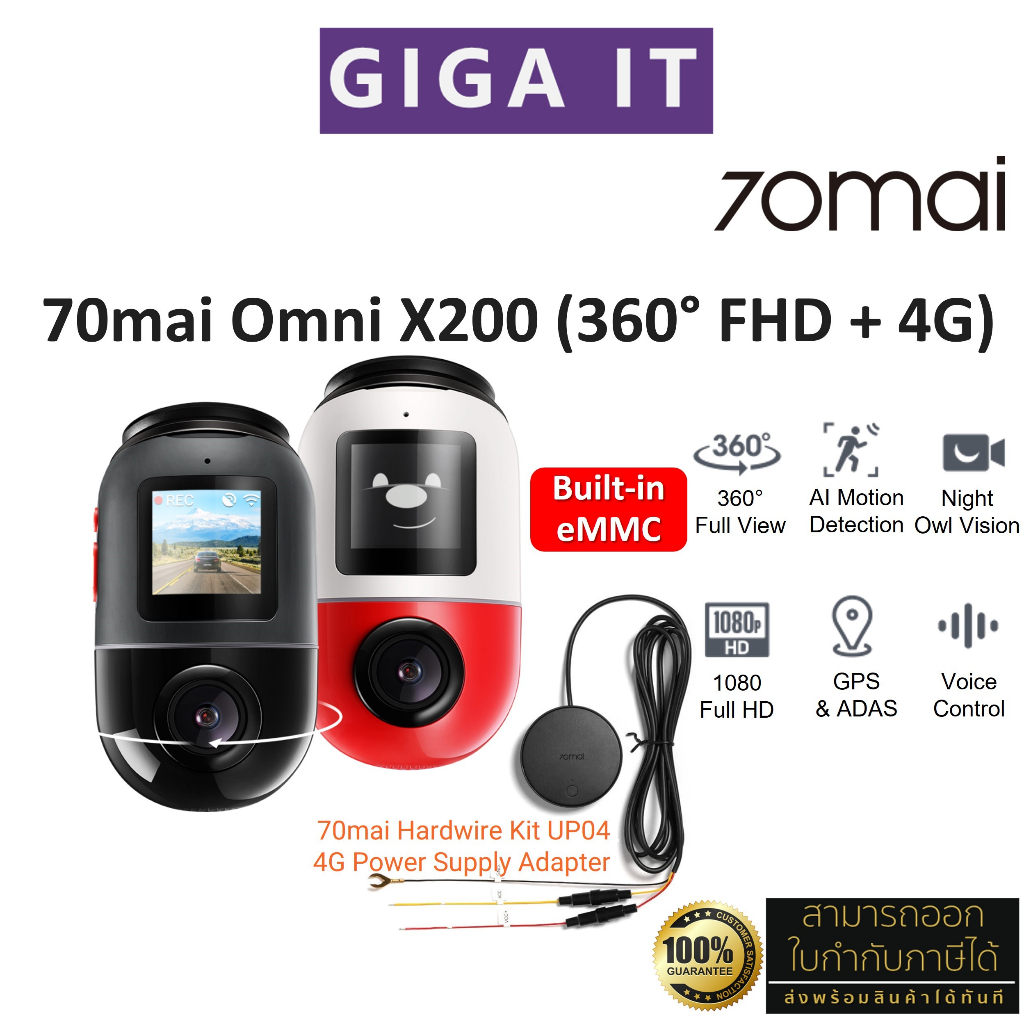 70mai X200 Omni Dash Cam กล้องติดรถยนต์ (FHD, 4G, ภาพพาโนรามา 360, ตรวจจับการเคลื่อนไหว, GPS, 60FPS ประกันสินค้า 1 ปี