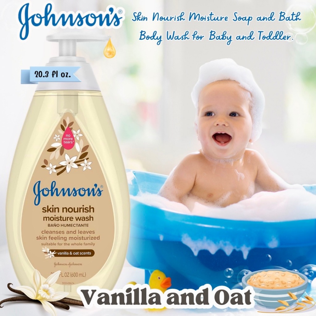 NEW✨นำเข้า🇺🇸 🫧Johnson's Skin Nourish Moisture Tear-Free Baby Body Wash with Vanilla & Oat Scents 20.3 oz - ครีมอาบน้ำ