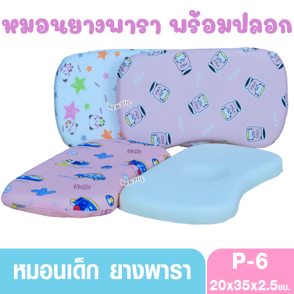หมอนหนุนเด็ก ยางพารา รุ่น P-6 พร้อมปลอกนุ่มยืด สำหรับเด็กอายุ 0-3 ปี - เด็กหญิง, เด็กผู้ชาย