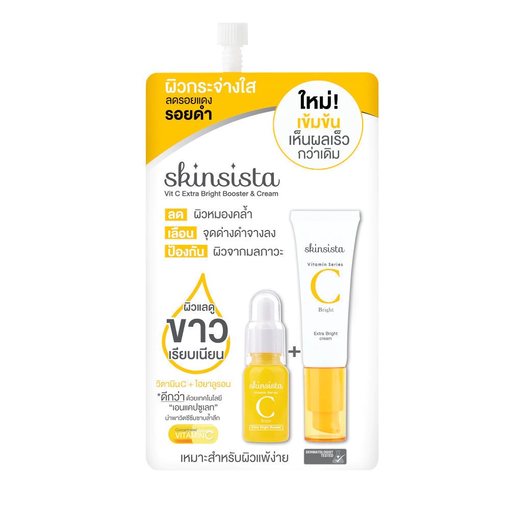 (กล่อง 6 ซอง) Skinsista Vit C บูสเตอร์เซรั่มและครีมแบบซอง (ปริมาณ 5 กรัม)