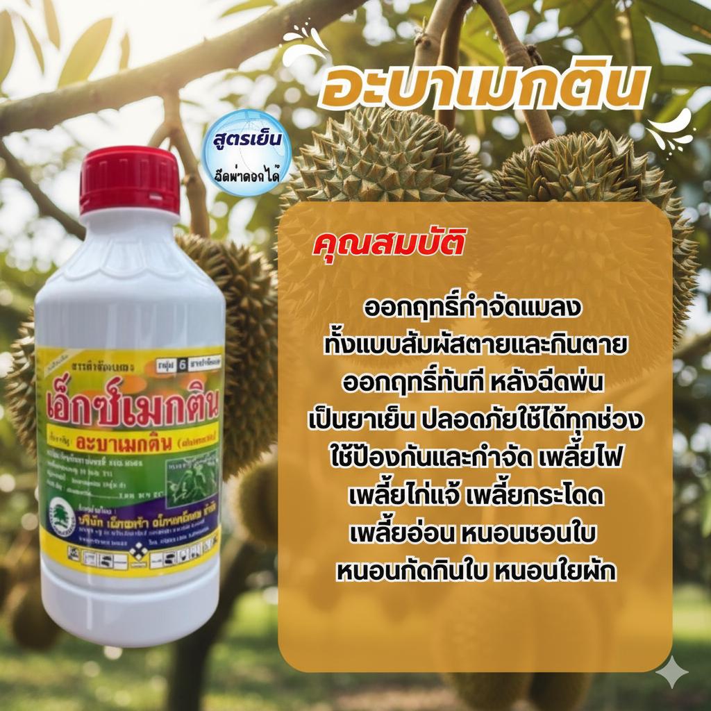อะบาเมกติน เอ็กซ์เมกติน สูตรเย็น (abamectin)1.8% W/V EC (ขนาด 1 ลิตร )กำจัดหนอน เพลี้ย