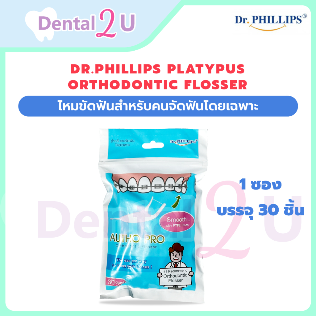Dr.Phillips Platypus orthodontic flosser ไหมขัดฟันสำหรับคนจัดฟันโดยเฉพาะ 1 ซอง บรรจุ 30 ชิ้น