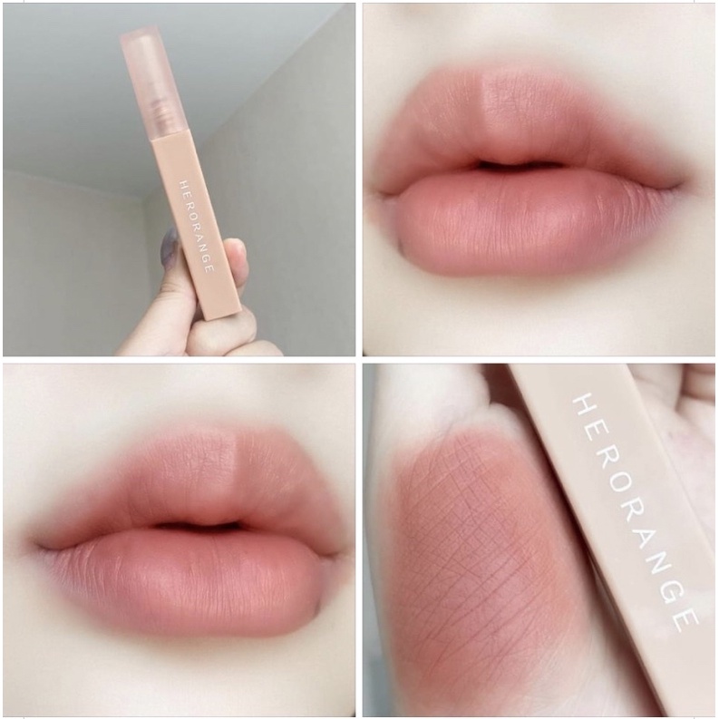 ลิป Herorange สีน่ารักมาก ลิปสีนี้ทาได้ทุกวันจริงๆ แมตต์เนื้อน้ำ ทาง่าย ไม่ตกร่อง ทาแล้วปากดูฟูสวยอิ่มดีมาก