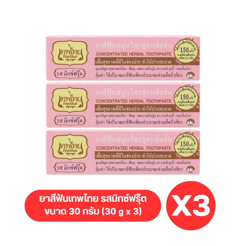 ( แพ็ค 3 ชิ้น ) ยาสีฟันเทพไทย มีให้เลือก 4 สูตร ขนาด 30 กรัม (30 g x 3)