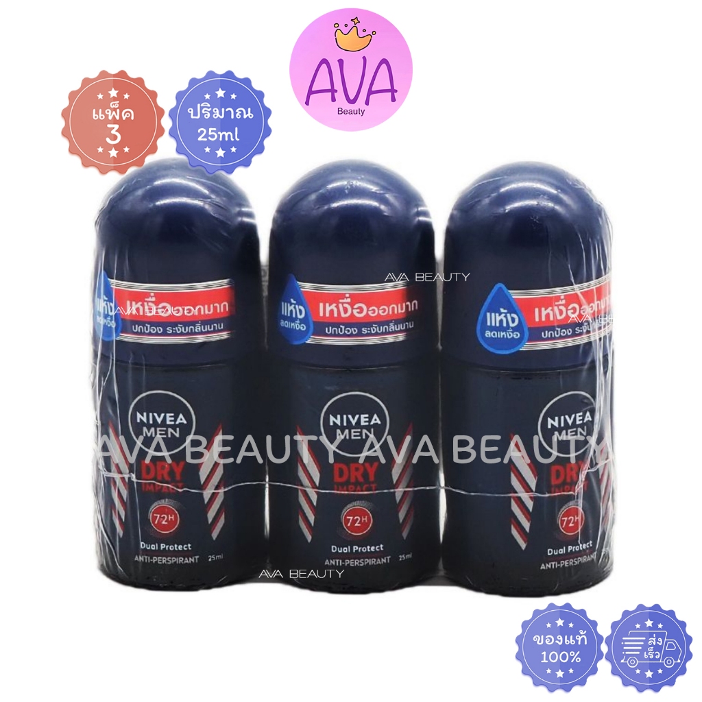 (25ml/แพ็ค3ขวด) NIVEA Men นีเวีย เมน โรลออน โรลออนนีเวีย
