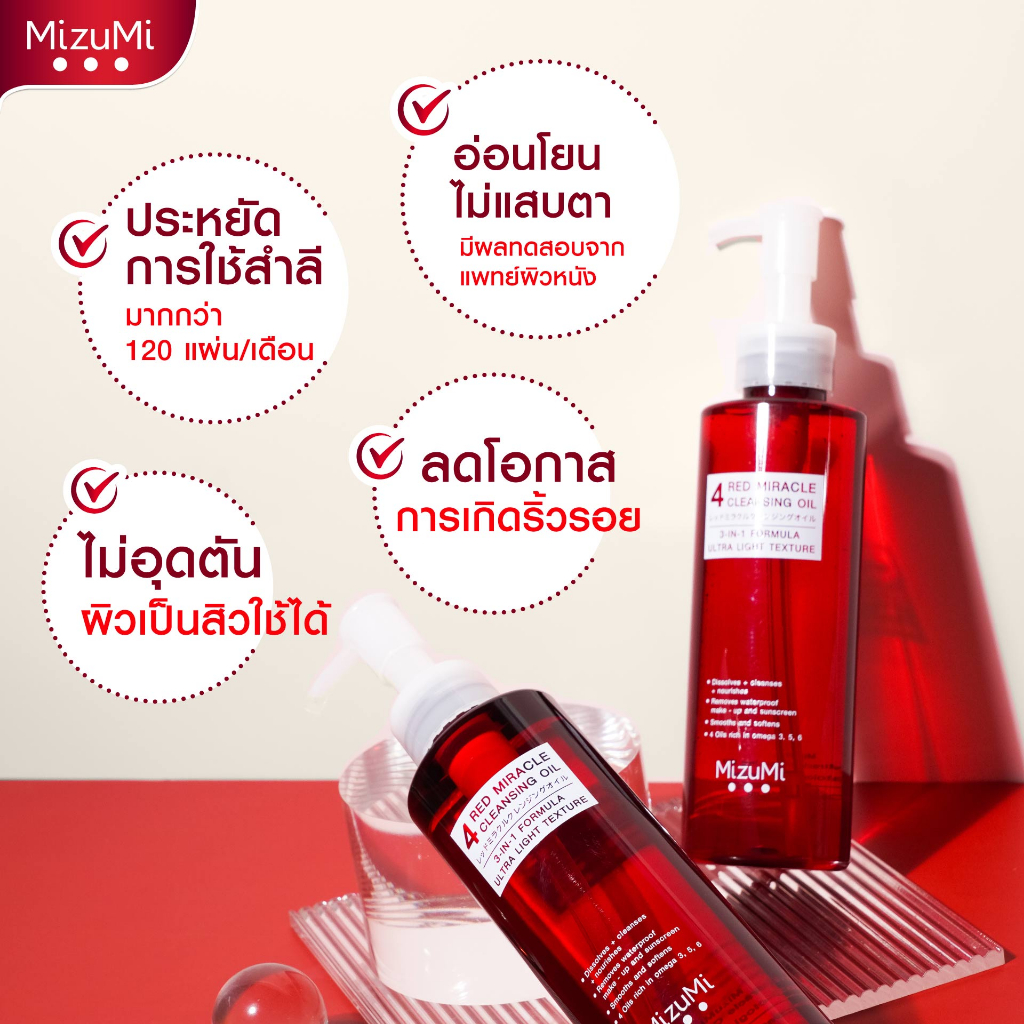 [แพ็คคู่] MizuMi 4 Red Miracle Cleansing Oil 150ml คลีนซิ่ง ออยล์ ล้างเครื่องสำอางกันน้ำ อ่อนโยน เนื้อบางเบา ผิวชุ่มชื้น