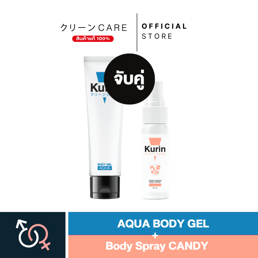 KURIN CARE AQUA BODY GEL เจลหล่อลื่น สูตรน้ำ ขนาด 100 ml และ BODY SPRAY CANDY สเปรย์ฉีดบำรุงผิวกาย ขนาด 25 ml.
