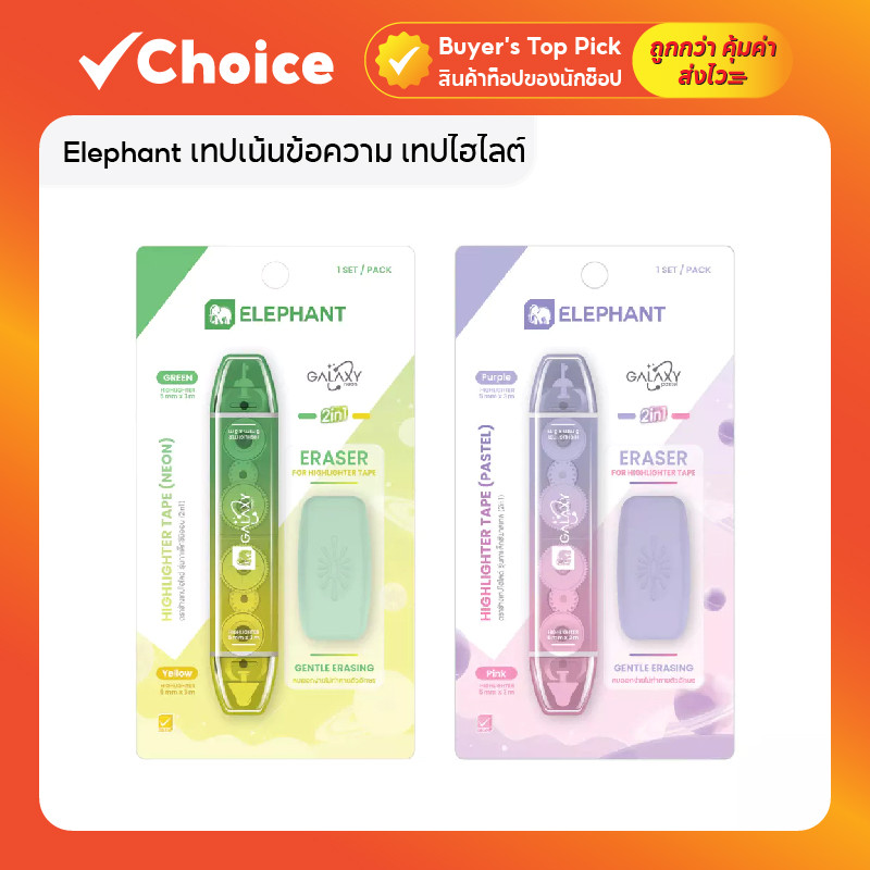 Elephant เทปเน้นข้อความ เทปไฮไลต์ รุ่นกาแล็กซี 2in1 สองสีในตลับเดียว มีให้เลือก 2 สี
