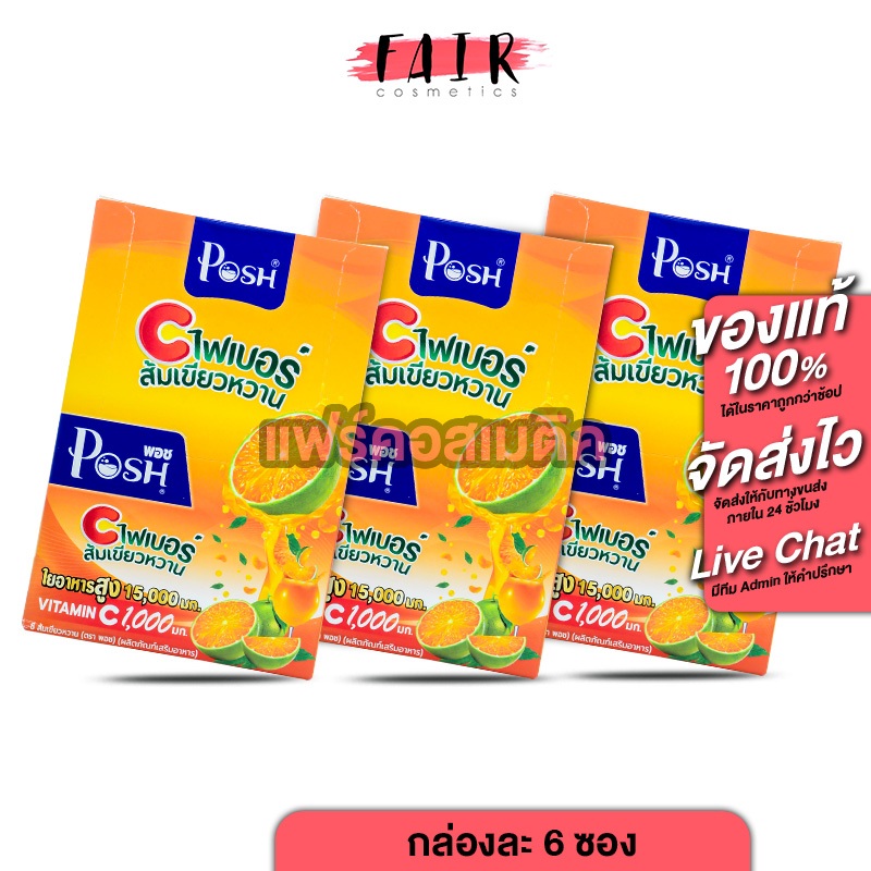 [3 กล่อง] PoshMedica C Fiber พอช เมดิก้า ซี ไฟเบอร์ ส้มเขียวหวาน [6 ซอง] ไฟเบอร์สูง [MC Plus แมค พลัส เดิม]