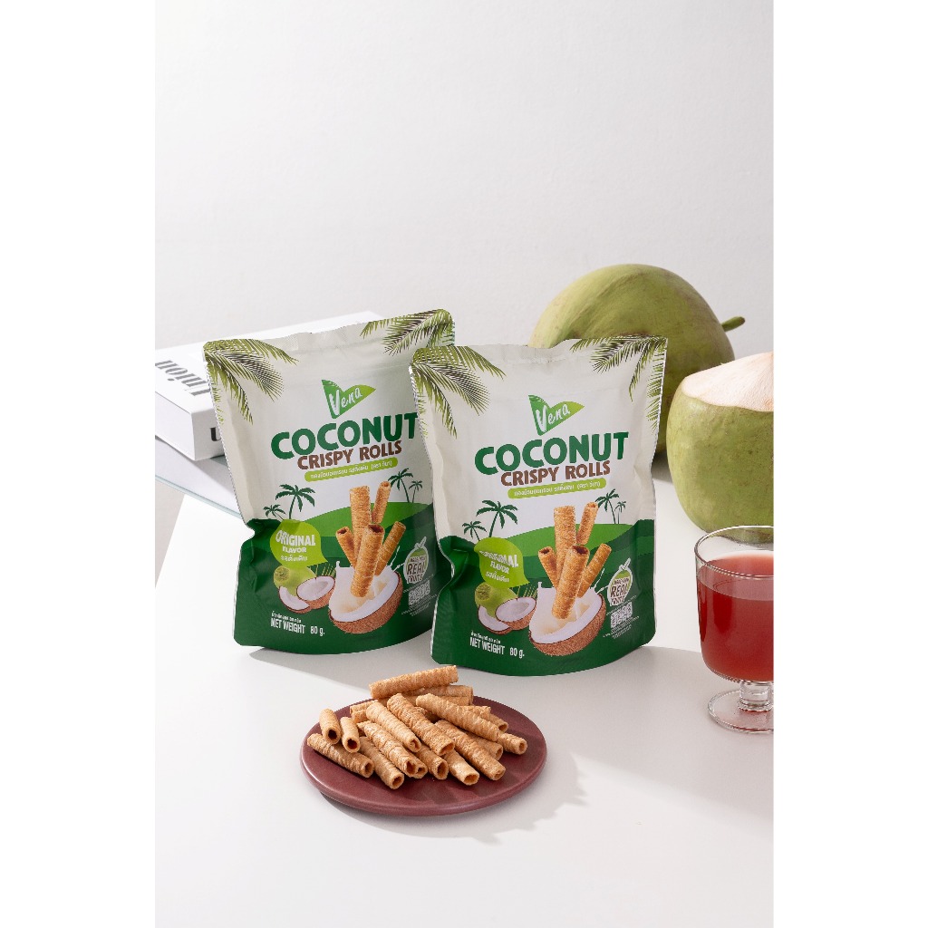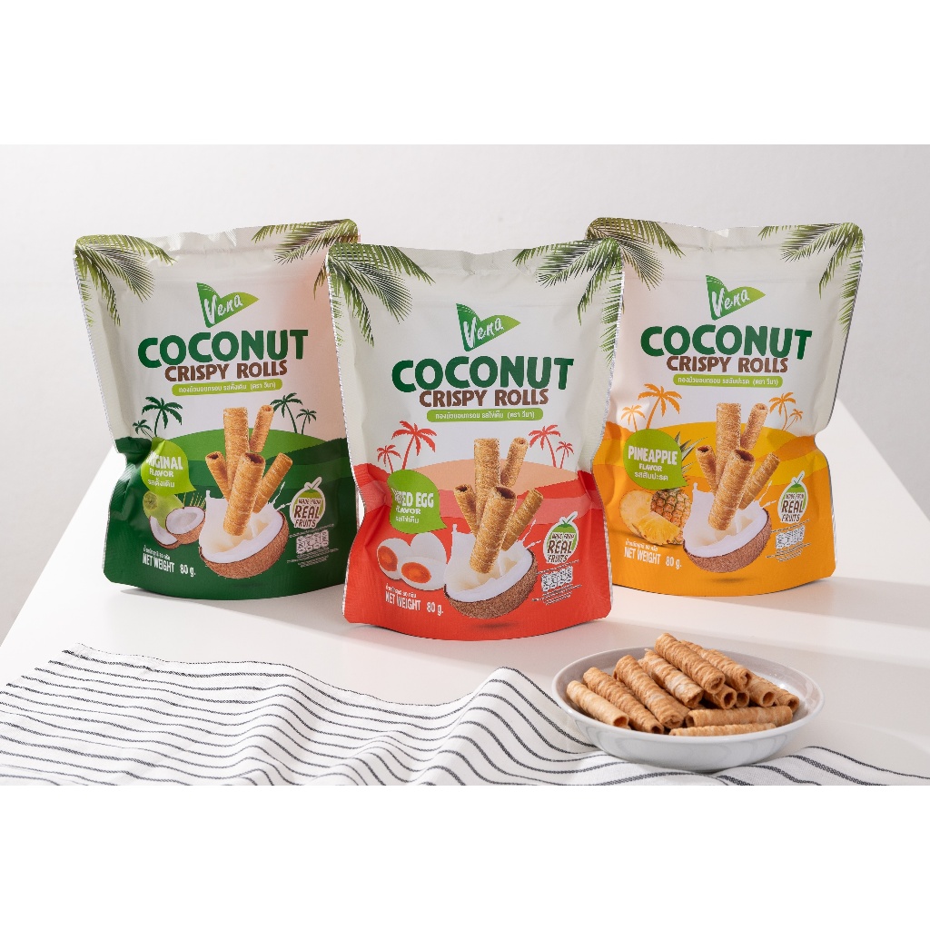 Vena วีนา ทองม้วนมะพร้าวอบกรอบ Coconut Crispy Rolls (80 g)
