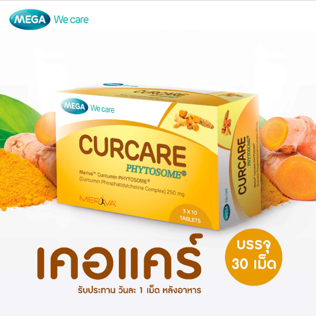 Mega we care Curcare Phytosome 250mg. (Meriva) 30เม็ด 1กล่อง สารสกัดจากขมิ้นชัน ในรูปแบบไฟโตโซม#7802
