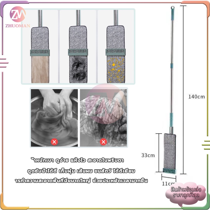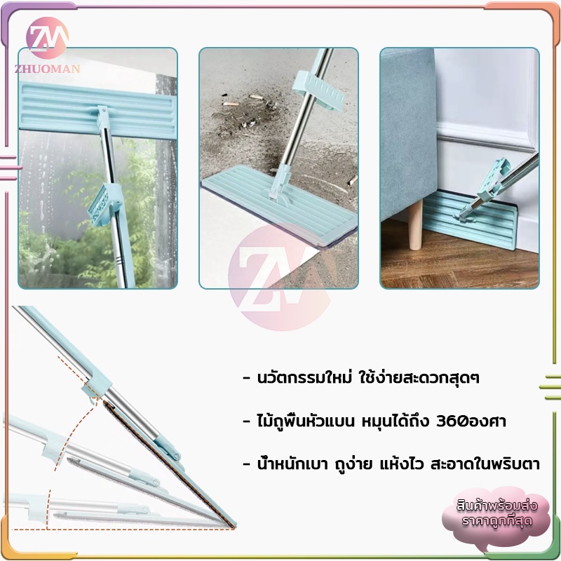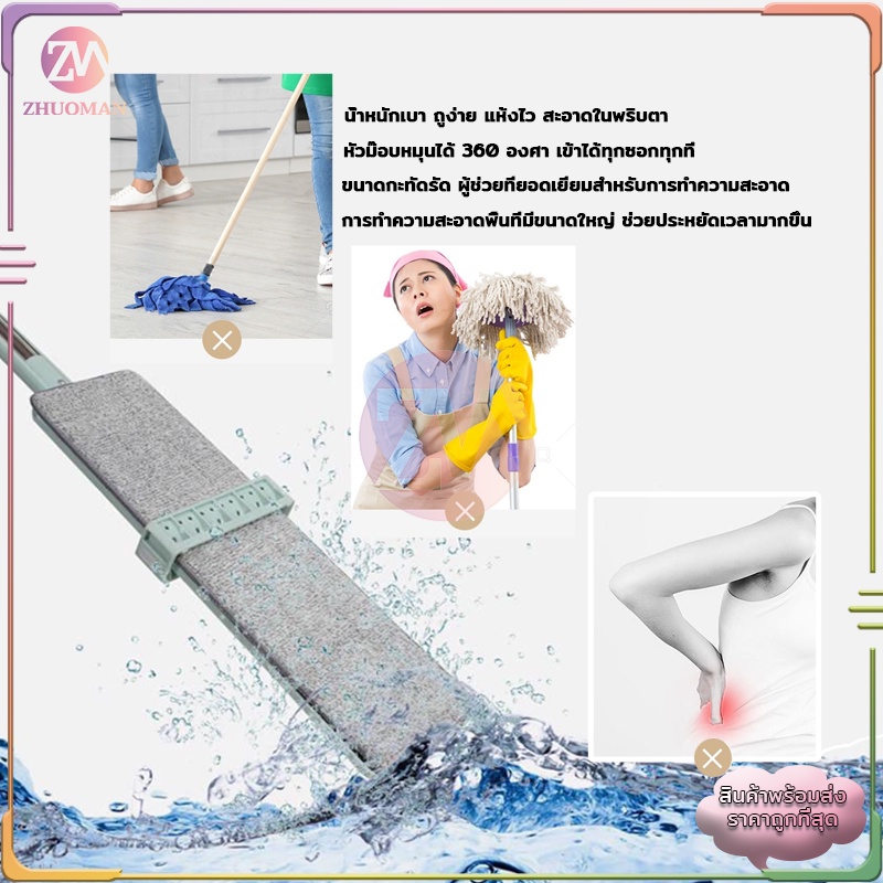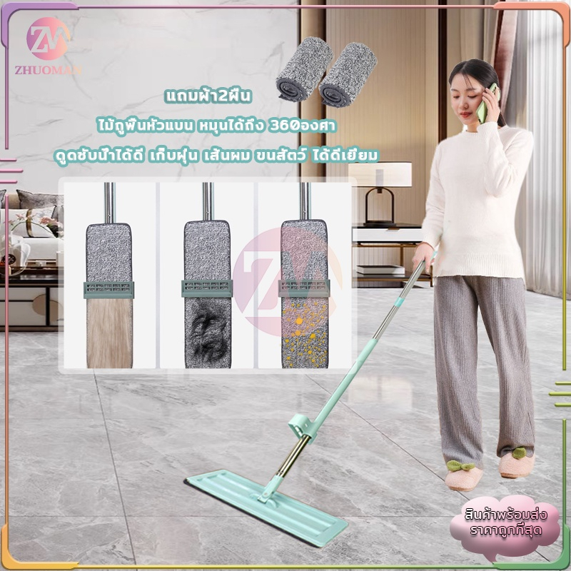 ที่ถูพื้น ไม่ถูพื้นรีดน้ําแถมผ้า2ผืน 360องศา ใช้งานง่ายสะดวก ดูดซับน้ำได้ดี น้ำหนักเบา ถูง่าย แห้งไว สะอาดในพริบตา