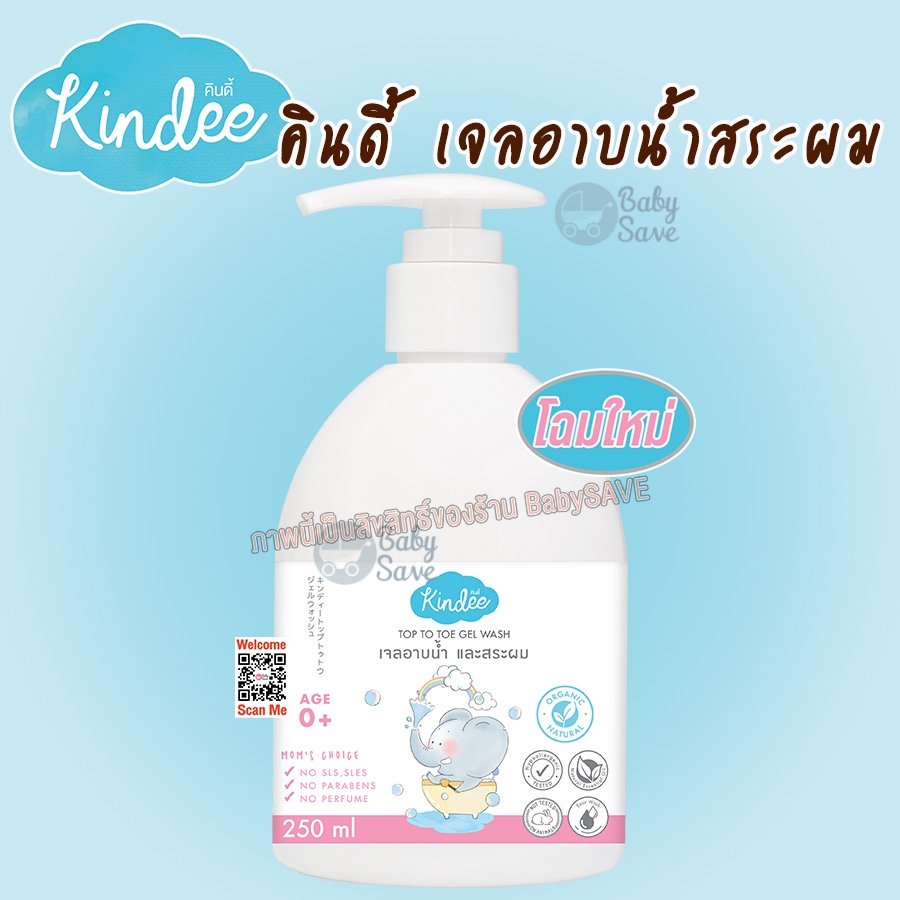Kindee เจลอาบน้ำ สระผม ออร์แกนิค สำหรับเด็กตั้งแต่แรกเกิด 250 มล.