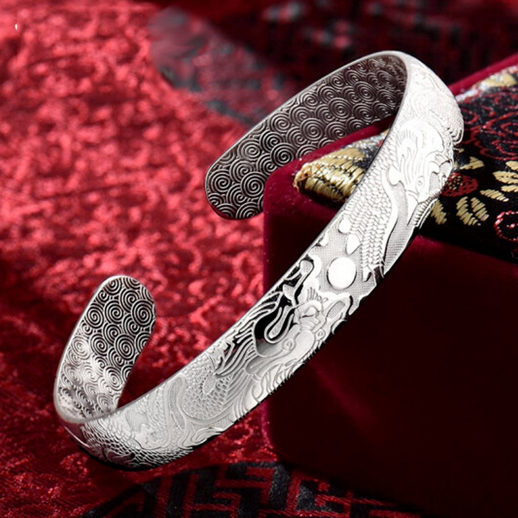 สร้อยข้อมือมังกรและฟีนิกซ์มงคลผู้ชายและผู้หญิงย้อนยุคมังกรและฟีนิกซ์สร้อยข้อมือเครื่องประดับแฟชั่นอุปกรณ์เสริมเทศกาลคู่มิตรภาพของข