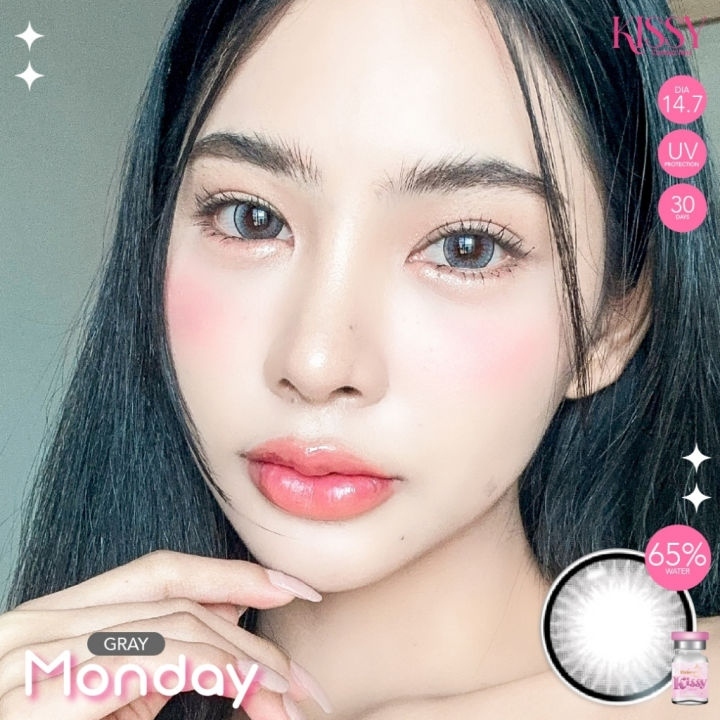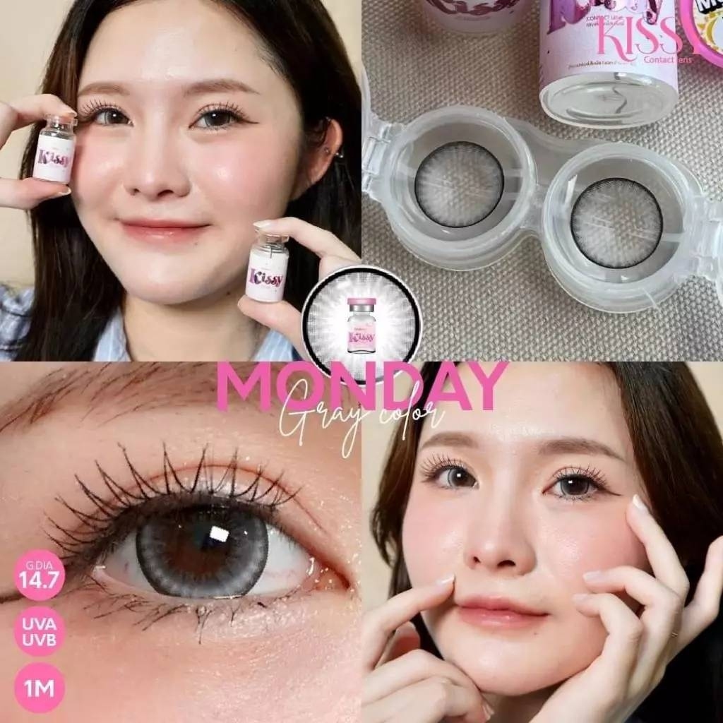 (1 คู่) Kissy Contact Lens เลนส์สัมผัส คิสซี่ ค่าสายตา 0.00 (ปกติ) ลาย Monday #สีเทา (แถมตลับ)