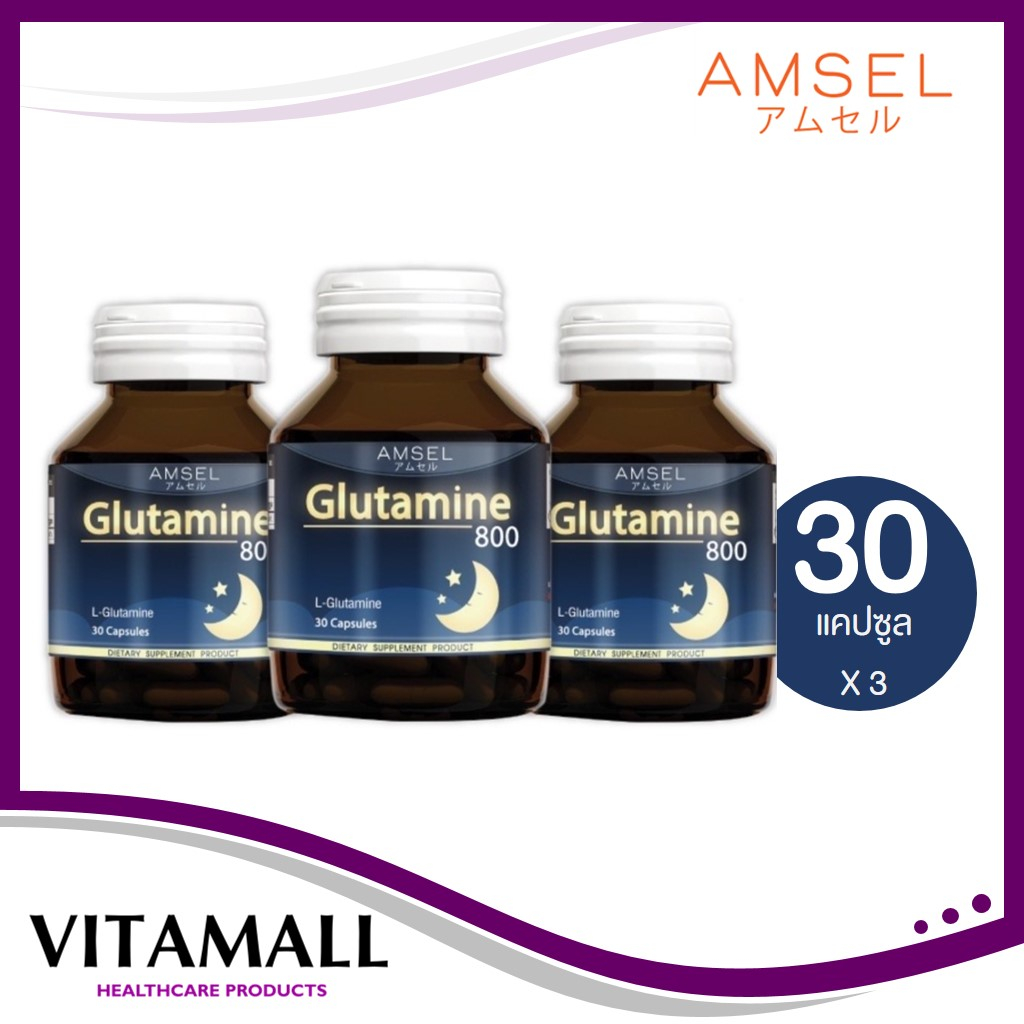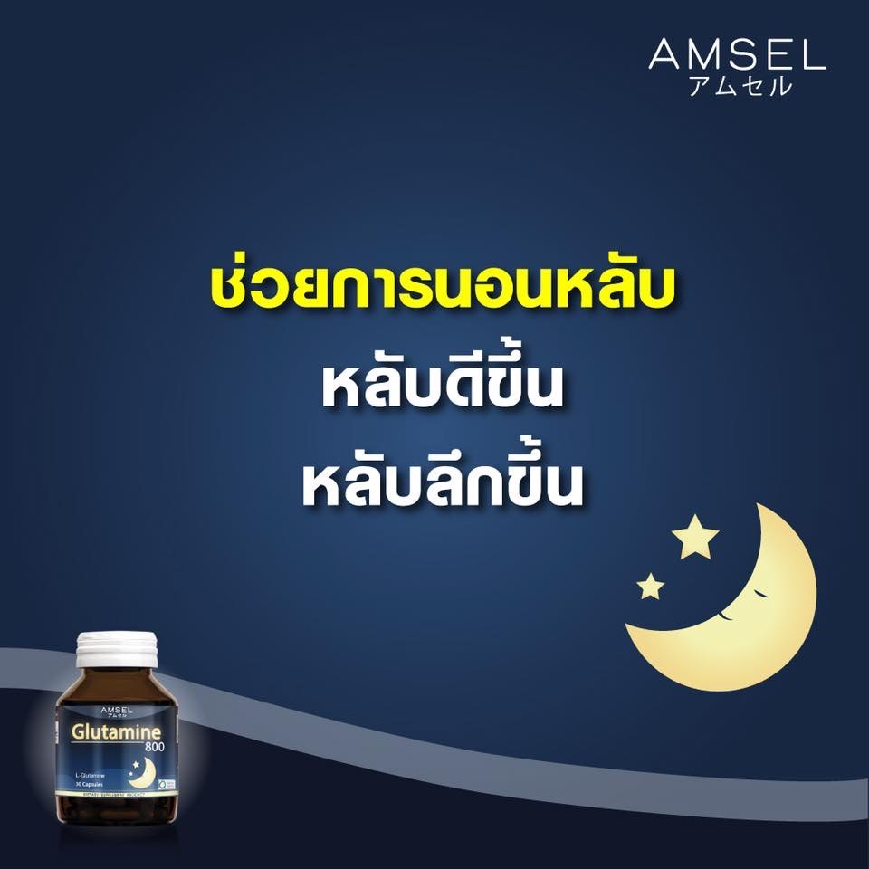 ซื้อ 3 คุ้มกว่า Amsel Glutamine แอมเซล กลูตามีน 800 มก. ช่วยให้นอนหลับสนิทมากขึ้น ลดความเครียด คลายอ่อ่นล้า (30 แคปซูล)
