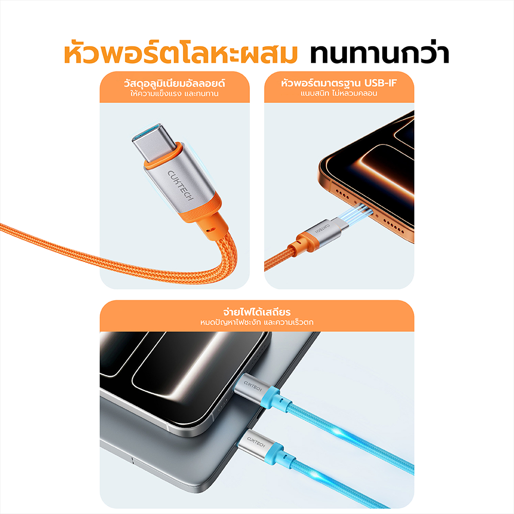 [ลดเหลือ 254] CUKTECH CTC615W 6A 240W สายชาร์จเร็ว USB-C to USB-C ยาว 1.5 ม. รองรับการชาร์จ PD3.1 สำหรับ Phone 17 -2Y