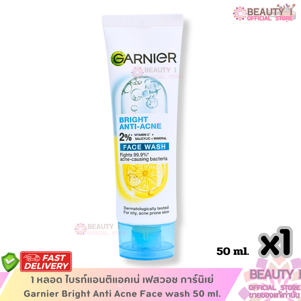 1 หลอด ไบร์ท แอนตี้ แอคเน่ เฟส วอช การ์นิเย่ Garnier Bright Anti Acne Face wash 50 ml.