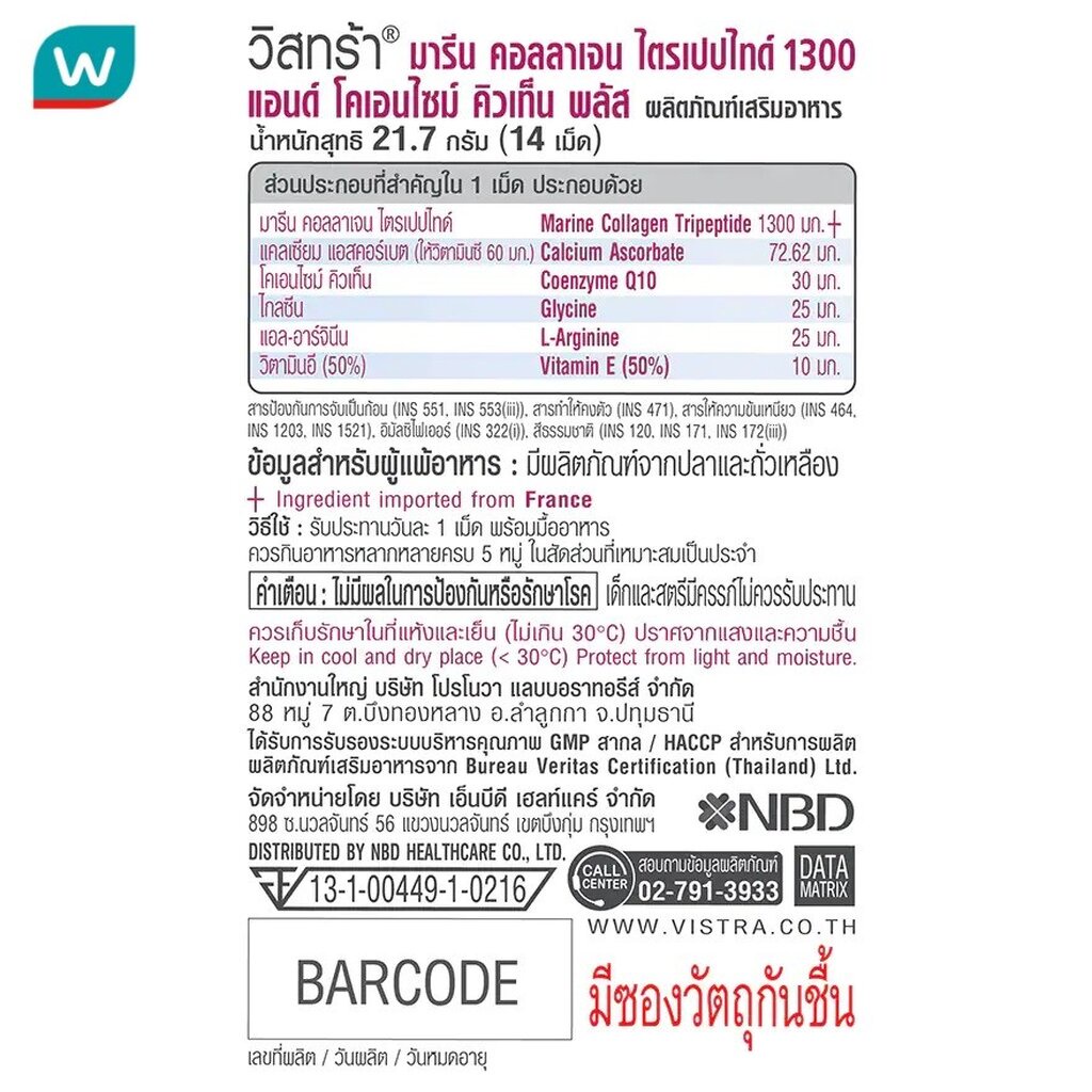 Vistra วิสทร้า มารีน คอลลาเจน 1300 มก. 14 เม็ด ผลิตภัณฑ์เสริมอาหาร